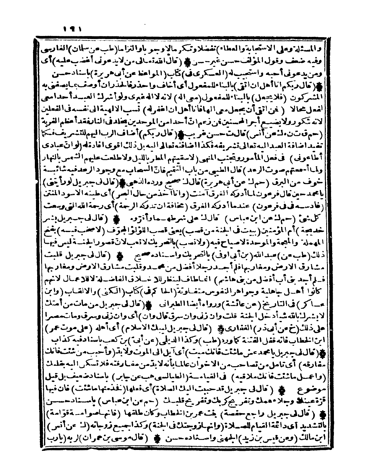 (قَالَ لي جِبْرِيل قلبت مَشَارِق الأَرْض وَمَغَارِبهَا فَلم أجد رجلا أفضل من مُحَمَّد وقلبت مَشَارِق الأَرْض وَمَغَارِبهَا فَلم أجد بني أَب أفضل من بني هَاشم) إِنَّمَا طَاف لينْظر للأخلاق الفاضلة لَا للأعمال لأَنهم كَانُوا أهل جَاهِلِيَّة وجواهر النُّفُوس مُتَفَاوِتَة (الْحَاكِم فِي) كتاب (الكنى) والألقاب (وَابْن عَسَاكِر) فِي التَّارِيخ (عَن عَائِشَة) وَرَوَاهُ أَيْضا الطَّبَرَانِيّ