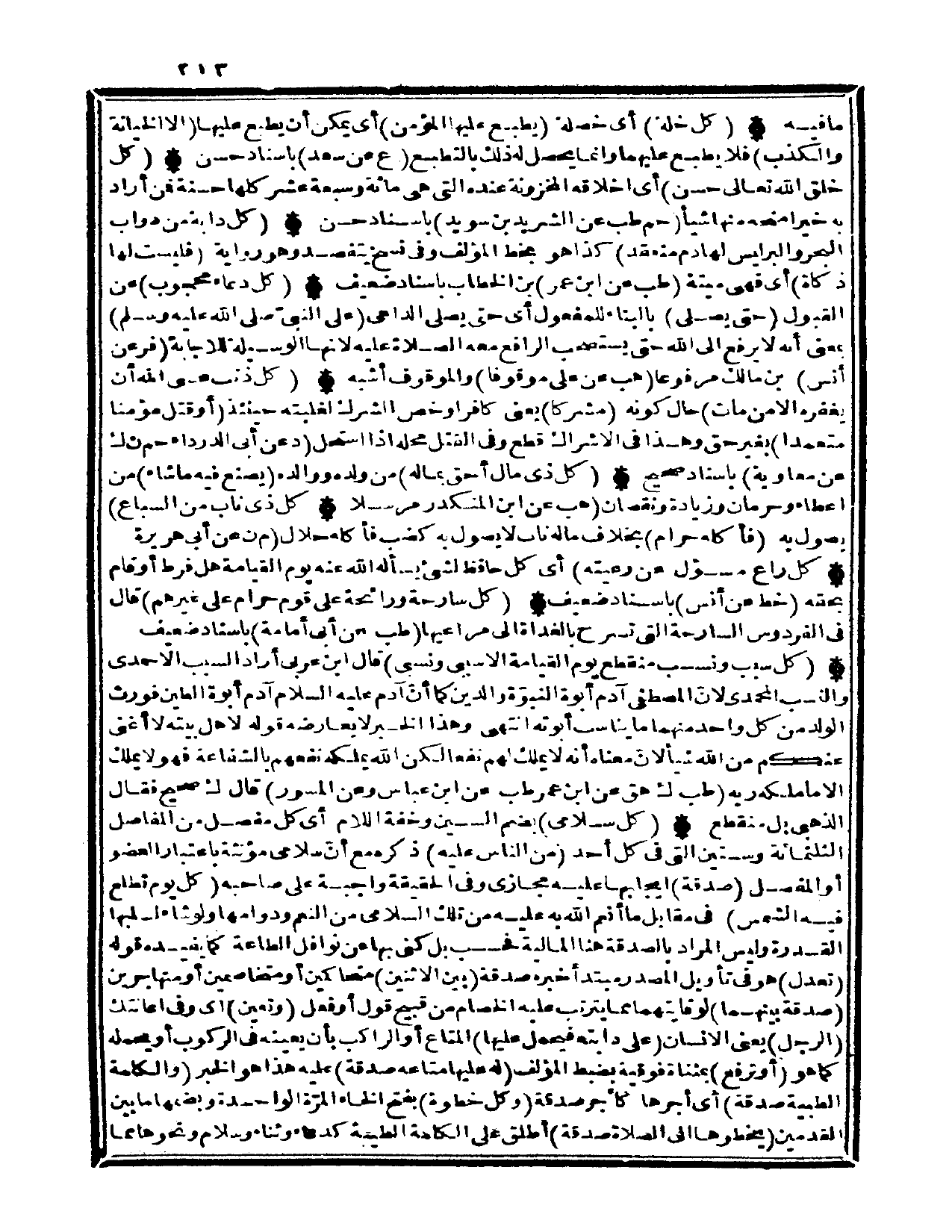 (كل سلامى) بِضَم السِّين وخفة اللَّام أَي كل مفصل من المفاصل الثلثمائة وَسِتِّينَ الَّتِي فِي كل أحد (من النَّاس عَلَيْهِ) ذكره مَعَ أَن سلامى مُؤَنّثَة بِاعْتِبَار الْعُضْو أَو الْمفصل (صَدَقَة) إِيجَابهَا عَلَيْهِ مجازى وَفِي الْحَقِيقَة وَاجِبَة على صَاحبه (كل يَوْم تطلع فِيهِ الشَّمْس) فِي مُقَابل مَا أنعم الله بِهِ عَلَيْهِ من تِلْكَ السلامى من النعم ودوامها وَلَو شَاءَ لسلبها الْقُدْرَة وَلَيْسَ المُرَاد بِالصَّدَقَةِ هُنَا الْمَالِيَّة فَحسب بل كنى بهَا عَن نوافل الطَّاعَة كَمَا يفِيدهُ قَوْله (تعدل) هُوَ فِي تَأْوِيل الْمصدر مُبْتَدأ خَبره صَدَقَة (بَين الْإِثْنَيْنِ) متحاكمين أَو متخاصمين أَو متهاجرين (صَدَقَة بَينهمَا) لوقايتهما مِمَّا يَتَرَتَّب عَلَيْهِ الْخِصَام من قَبِيح قَول أَو فعل (وَتعين) أَي وَفِي إعانتك (الرجل) يَعْنِي الْإِنْسَان (على دَابَّته فَيحمل عَلَيْهَا) الْمَتَاع أَو الرَّاكِب بِأَن يُعينهُ فِي الرّكُوب أَو يحملهُ كَمَا هُوَ (أَو ترفع) بمثناة فوقية بضبط الْمُؤلف (لَهُ عَلَيْهَا مَتَاعه صَدَقَة) عَلَيْهِ هَذَا هُوَ الْخَبَر (والكلمة الطبية صَدَقَة) أَي أجرهَا كَأَجر صَدَقَة (وكل خطْوَة) بِفَتْح الْخَاء الْمرة الْوَاحِدَة وَبِضَمِّهَا مَا بَين الْقَدَمَيْنِ (يخطوها إِلَى الصَّلَاة صَدَقَة) أطلق على الْكَلِمَة الطّيبَة كدعاء وثناء وَسَلام وَنَحْوهَا مِمَّا