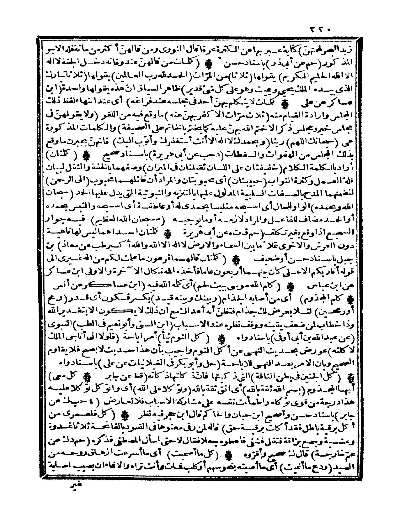 (كلمتان أَرَادَ بِالْكَلِمَةِ الْكَلَام (خفيفتان على اللِّسَان ثقيلتان فِي الْمِيزَان) وصفهما بالخفة والثقل لبَيَان قلَّة الْعَمَل وَكَثْرَة الثَّوَاب (حبيبتان) أَي محبوبتان وَالْمرَاد أَن قائلهما مَحْبُوب (إِلَى الرَّحْمَن) لتضمنهما الْمَدْح بِالصِّفَاتِ السلبية الْمَدْلُول عيها بالتنزيه والثبوتية الَّتِي يدل عَلَيْهَا الْحَمد (سُبْحَانَ الله وَبِحَمْدِهِ) الْوَاو للْحَال أَي أسبحه متلبساً بحمدي لَهُ أَو عاطفة أَي اسبحه والتبس بِحَمْدِهِ أَو الْحَمد مُضَاف للْفَاعِل وَالْمرَاد لَازمه أَو مَا يُوجِبهُ (سُبْحَانَ الله الْعَظِيم) فِيهِ جَوَاز السجع إِذا وَقع بِغَيْر تكلّف (حم ق ت هـ عَن أبي هُرَيْرَة