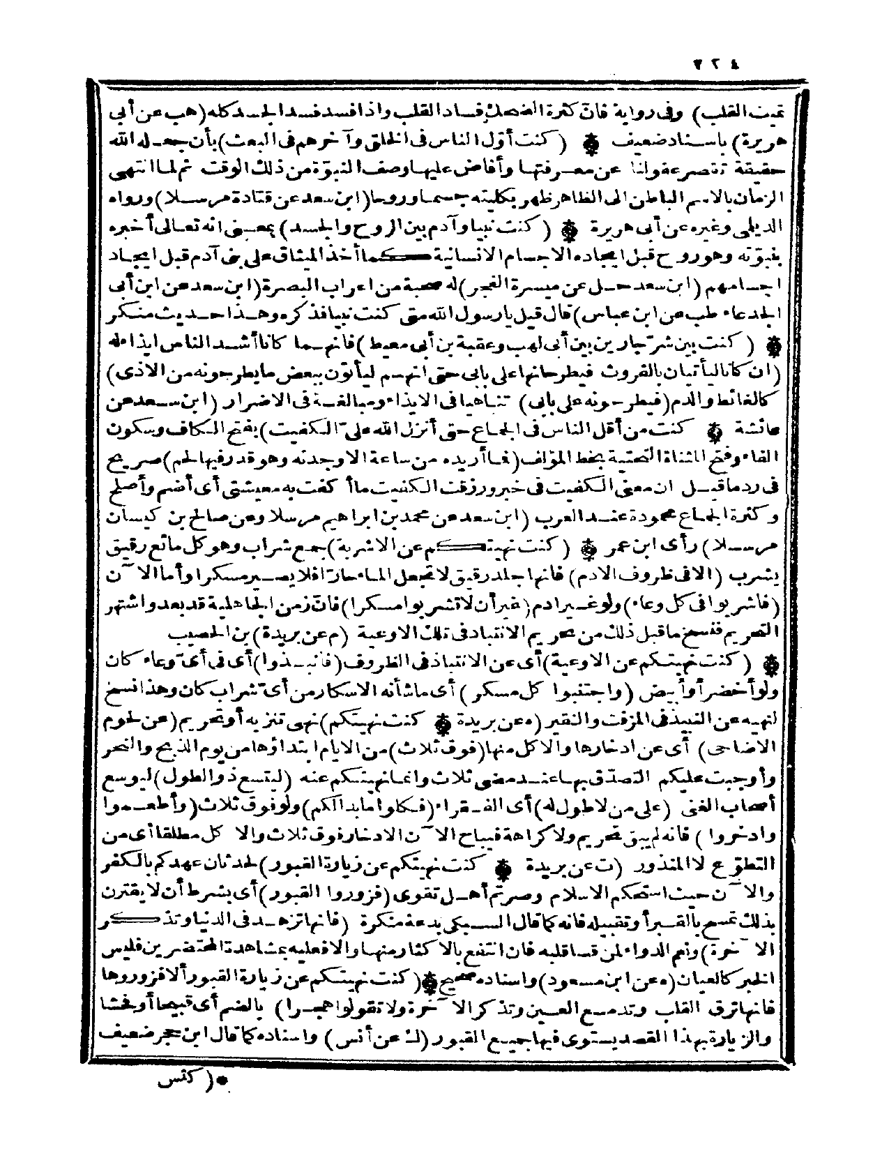 (كنت نَهَيْتُكُمْ عَن الْأَشْرِبَة) جمع شراب وَهُوَ كل مَائِع رَقِيق يشرب (إِلَّا فِي ظروف الآدم) فَإِنَّهَا جلد رَقِيق لَا تجْعَل المَاء حاراً فَلَا يصير مُسكرا وَأما الْآن (فَاشْرَبُوا فِي كل وعَاء) وَلَو غير آدم (غير أَن لَا تشْربُوا مُسكرا) فَإِن زمن الْجَاهِلِيَّة قد بعد واشتهر التَّحْرِيم فنسخ مَا قبل ذَلِك من تَحْرِيم الانتباد فِي تِلْكَ الأوعية (م عَن بُرَيْدَة) بن الْحصيب