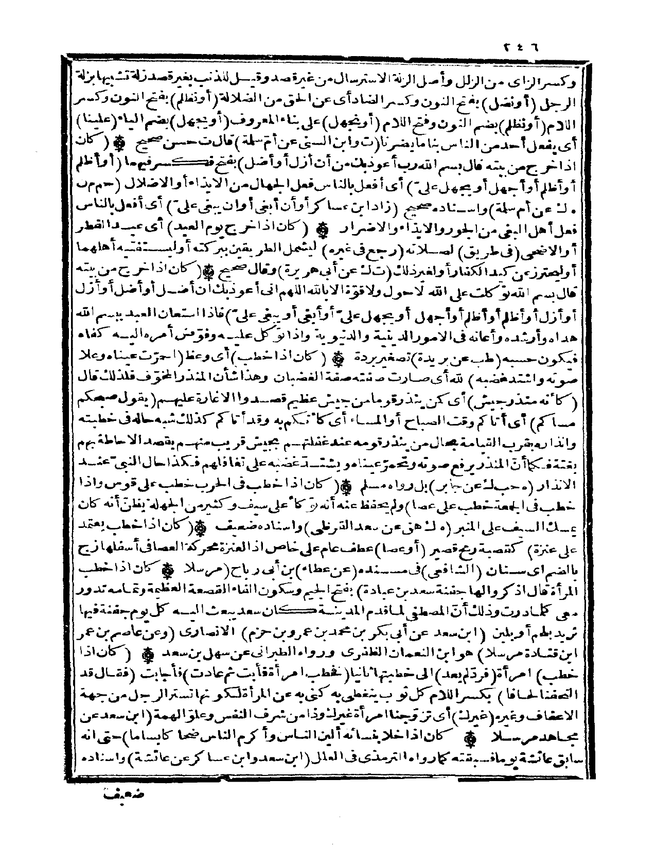 (كَانَ إِذا خطب يعْتَمد على عنزة) كقصبة رمح قصير (أَو عَصا) عطف عَام على خَاص إِذا لعنزة محركة الْعَصَا فِي أَسْفَلهَا زج بِالضَّمِّ أَي سِنَان (الشَّافِعِي) فِي مُسْنده (عَن عَطاء) بن أبي رَبَاح (مُرْسلا