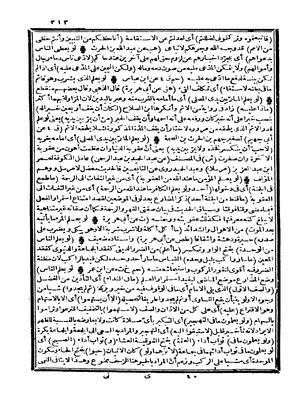 (لَو يعلم الْمَار بَين يَدي الْمصلى) أَي مَا أَمَامه بِالْقربِ مِنْهُ وَعبر باليدين لَان المزاولة بهما أَكثر (مَاذَا عَلَيْهِ) زَاد فِي رِوَايَة من الاثم وأنكرها ابْن الصّلاح (لَكَانَ أَن يقف أَرْبَعِينَ خيرا لَهُ) بِنصب خيرا على أَنه خبر كَانَ وَرَفعه على أَنه اسْمهَا وَأَن يقف الْخَبَر (من أَن يمر بَين يَدَيْهِ) يَعْنِي لَو علم قدر الاثم الَّذِي يلْحقهُ من مروره لاختار أَن يقف الْمدَّة الْمَذْكُورَة لِئَلَّا يلْحقهُ الاثم (ق 4 عَن أبي جهيم) تَصْغِير جهم بن الْحَرْث بن الصمَّة