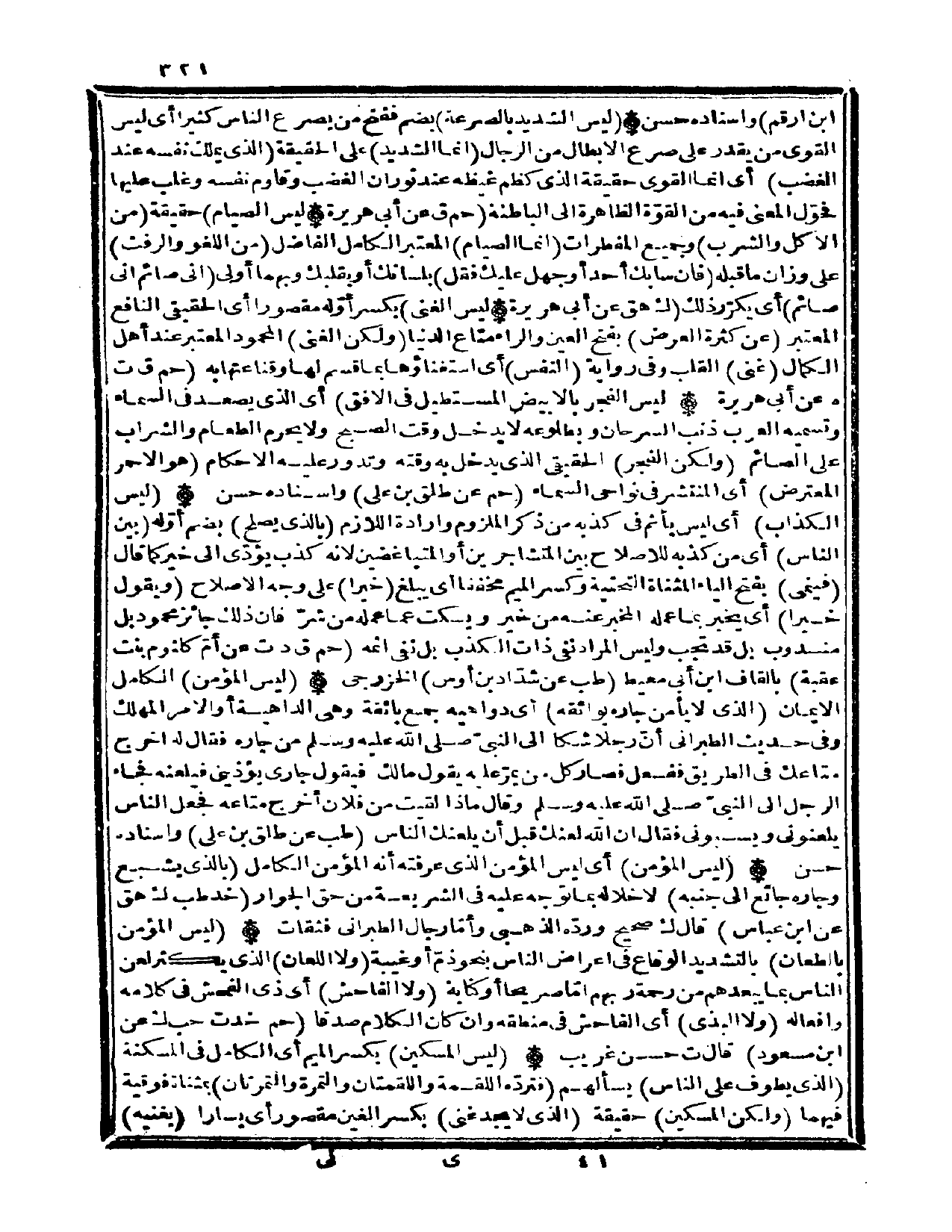 (لَيْسَ الْمُؤمن بالطعان) بِالتَّشْدِيدِ الوقاع فِي اعراض النَّاس بِنَحْوِ ذمّ أَو غيبَة (وَلَا اللّعان) الَّذِي يكثر لعن النَّاس بِمَا يبعدهم من رَحْمَة رَبهم اما صَرِيحًا أَو كِنَايَة (وَلَا الْفَاحِش) أَي ذِي الْفُحْش فِي كَلَامه وافعاله (وَلَا البذى) أَي الْفَاحِش فِي مَنْطِقه وان كَانَ الْكَلَام صدقا (حم خدت حب ك عَن ابْن مَسْعُود) قَالَ ت حسن غَرِيب