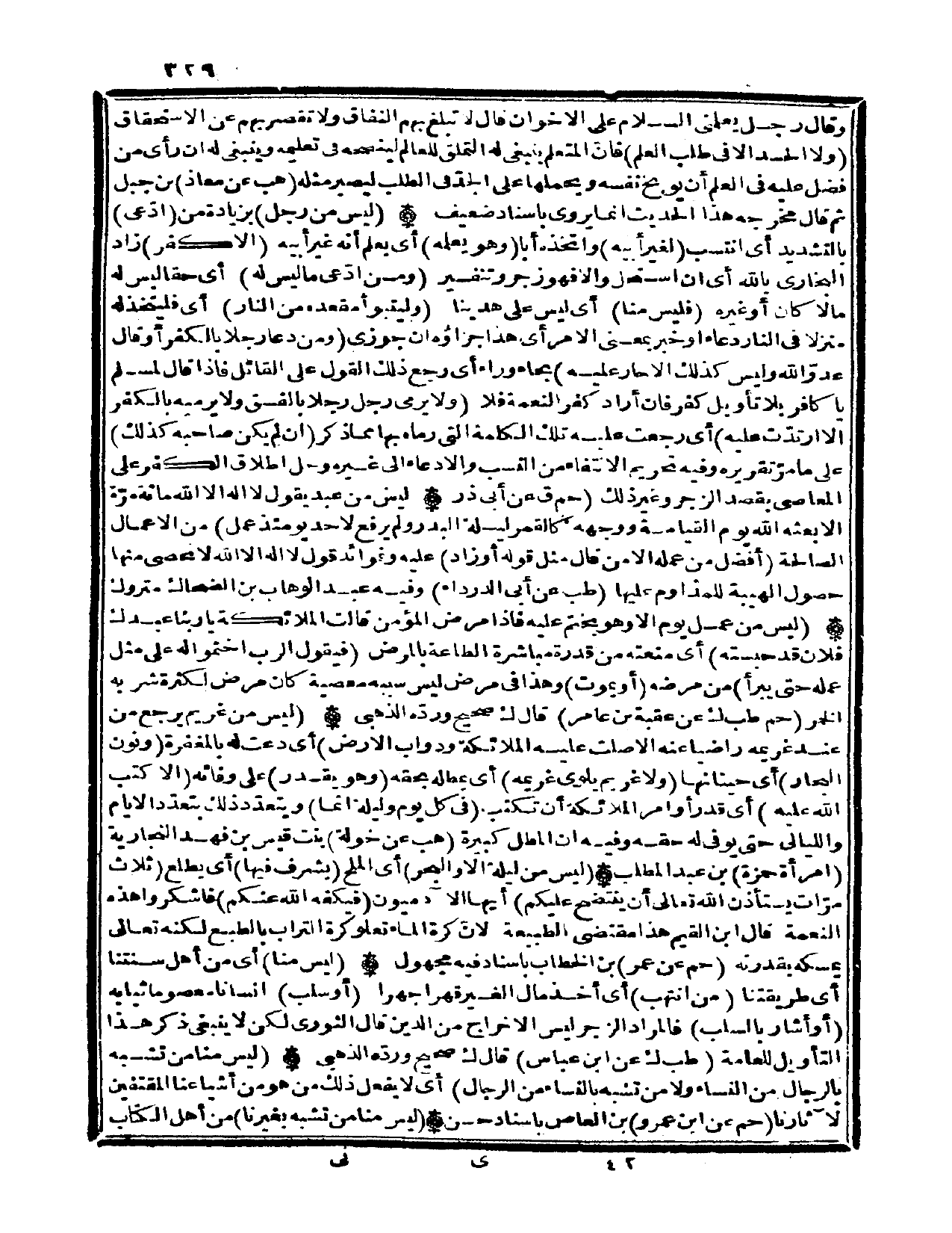 وَقَالَ رجل يعلمني السَّلَام على الاخوان قَالَ لَا تبلغ بهم النِّفَاق وَلَا تقصر بهم عَن الِاسْتِحْقَاق (وَلَا الْحَسَد الا فِي طلب الْعلم) فان المتعلم يَنْبَغِي لَهُ التملق للْعَالم لينصحه فِي تَعْلِيمه وَيَنْبَغِي لَهُ ان رأى من فضل عَلَيْهِ فِي الْعلم أَن يوبخ نَفسه ويحملها على الْجد فِي الطّلب ليصير مثله (هَب عَن معَاذ) بن جبل ثمَّ قَالَ مخرجه هَذَا الحَدِيث انما يرْوى باسناد ضَعِيف