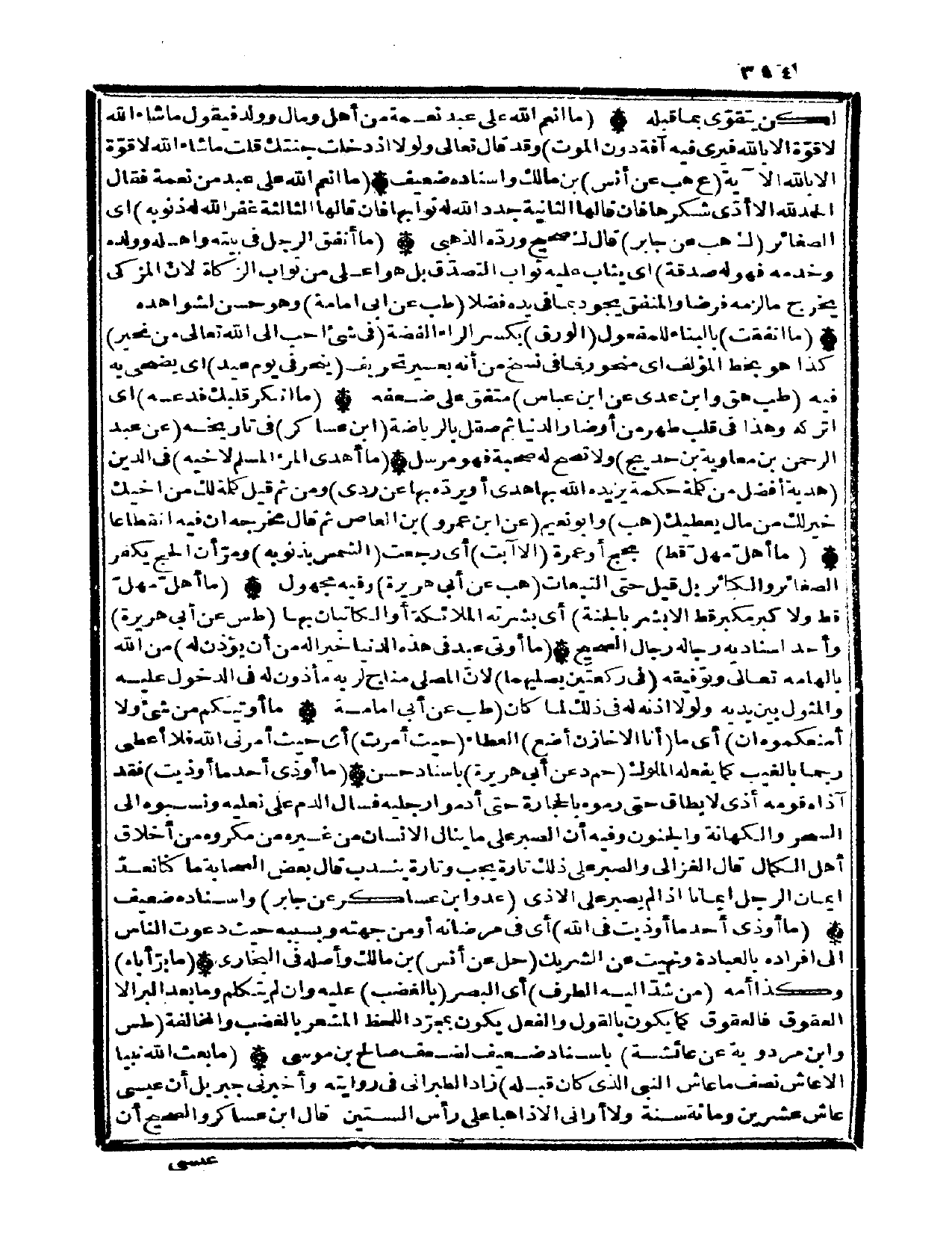 (مَا انْعمْ الله على عبد نعْمَة من أهل وَمَال وَولد فَيَقُول مَا شَاءَ الله لَا قُوَّة الا بِاللَّه فَيرى فِيهِ آفَة دون الْمَوْت) وَقد قَالَ تَعَالَى {وَلَوْلَا إِذْ دخلت جنتك قلت مَا شَاءَ الله لَا قُوَّة إِلَّا بِاللَّه} الْآيَة (ع هَب عَن أنس) بن مَالك واسناده ضَعِيف