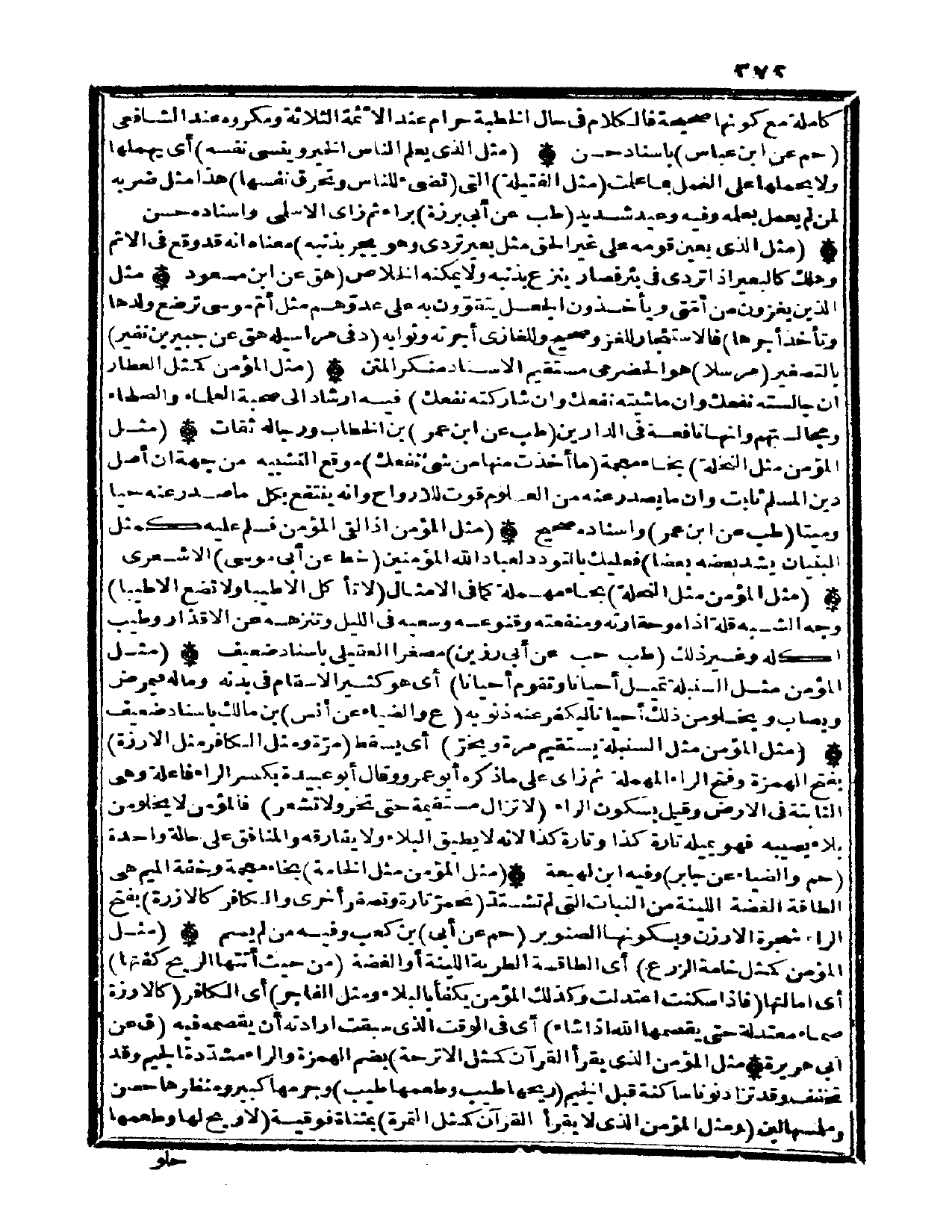 (مثل الْمُؤمن اذا لَقِي الْمُؤمن فَسلم عَلَيْهِ كَمثل الْبُنيان شيد بعضه بَعْضًا) فَعَلَيْك بالتودد لعباد الله الْمُؤمنِينَ (خطّ عَن أبي مُوسَى) الاشعري