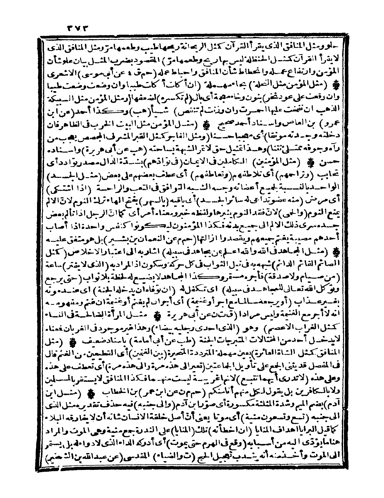 حُلْو وَمثل الْمُنَافِق الَّذِي يقْرَأ الْقُرْآن كَمثل الريحانة رِيحهَا طيب وطعمها مر وَمثل الْمُنَافِق الَّذِي لَا يقْرَأ الْقُرْآن كَمثل الحنظلة لَيْسَ بهَا ريح وطعمها مر) الْمَقْصُود بِضَرْب الْمثل بَيَان علو شَأْن الْمُؤمن وارتفاع عمله وانحطاط شَأْن الْمُنَافِق واحباط عمله (حم ق 4 عَن أبي مُوسَى) الاشعري