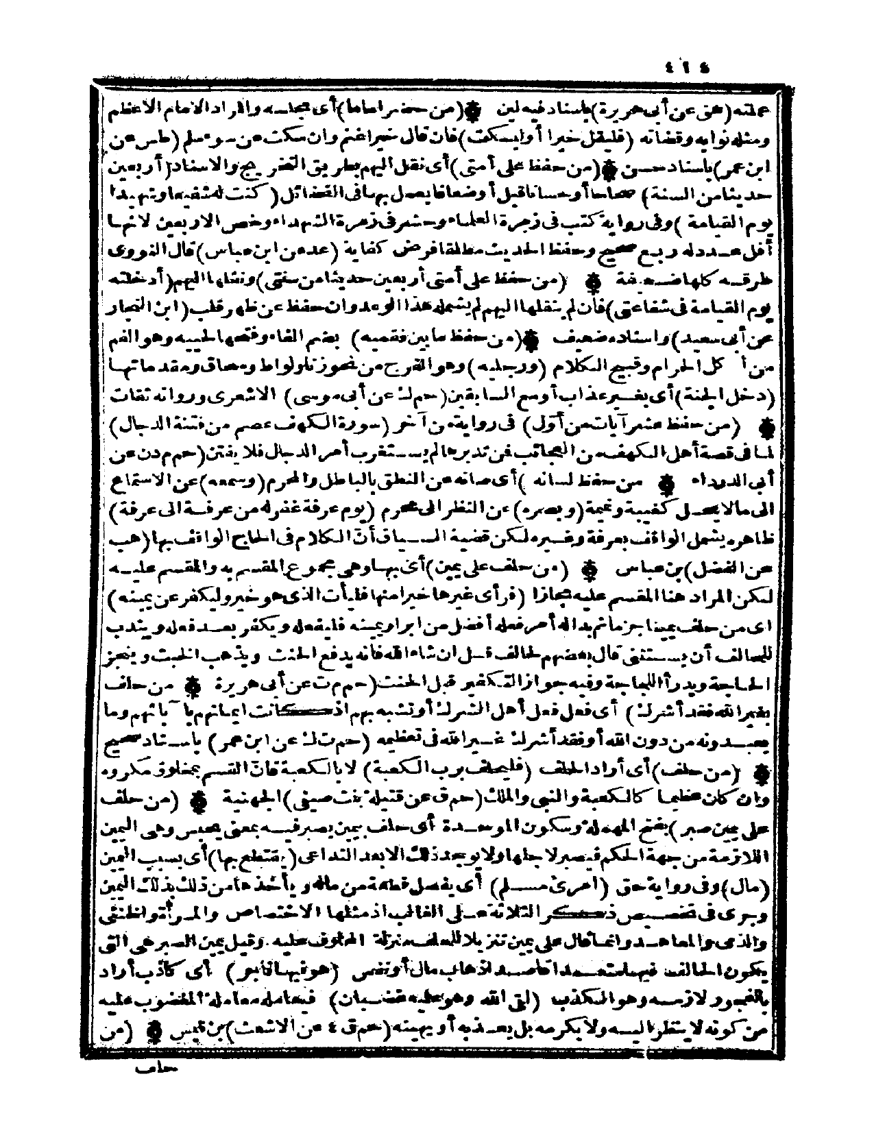 (من حلف على يَمِين صَبر (بِفَتْح الْمُهْملَة وَسُكُون الْمُوَحدَة أَي حلف بِيَمِين يصبر فِيهِ بِمَعْنى يحبس وَهِي الْيَمين اللَّازِمَة من جِهَة الحكم فيصبر لاجلها وَلَا يُوجد ذَلِك الا بعد التداعي (يقتطع بهَا) أَي بِسَبَب الْيَمين (مَال) وَفِي رِوَايَة حق (امْرِئ مُسلم) أَي يفصل قِطْعَة من مَاله ويأخذها من ذَلِك بذلك الْيَمين وَجرى فِي تَخْصِيص ذكر الثَّلَاثَة على الْغَالِب اذ مثلهَا الِاخْتِصَاص وَالْمَرْأَة وَالْخُنْثَى وَالذِّمِّيّ والمعاهد وانما قَالَ على يَمِين تَنْزِيلا للحلف منزلَة الْمَحْلُوف عَلَيْهِ وَقيل يَمِين الصَّبْر هِيَ الَّتِي يكون الْحَالِف فِيهَا مُتَعَمدا قَاصِدا ذهَاب مَال أَو نفس (هُوَ فِيهَا فَاجر) أَي كَاذِب أَرَادَ بِالْفُجُورِ لَازمه وَهُوَ الْكَذِب (لقى الله وَهُوَ عَلَيْهِ غَضْبَان) فيعامله مُعَاملَة المغضوب عَلَيْهِ من كَونه لَا ينظر اليه وَلَا يُكرمهُ بل يعذبه أَو يهينه (حم ق 4 عَن الاشعث) بن قيس