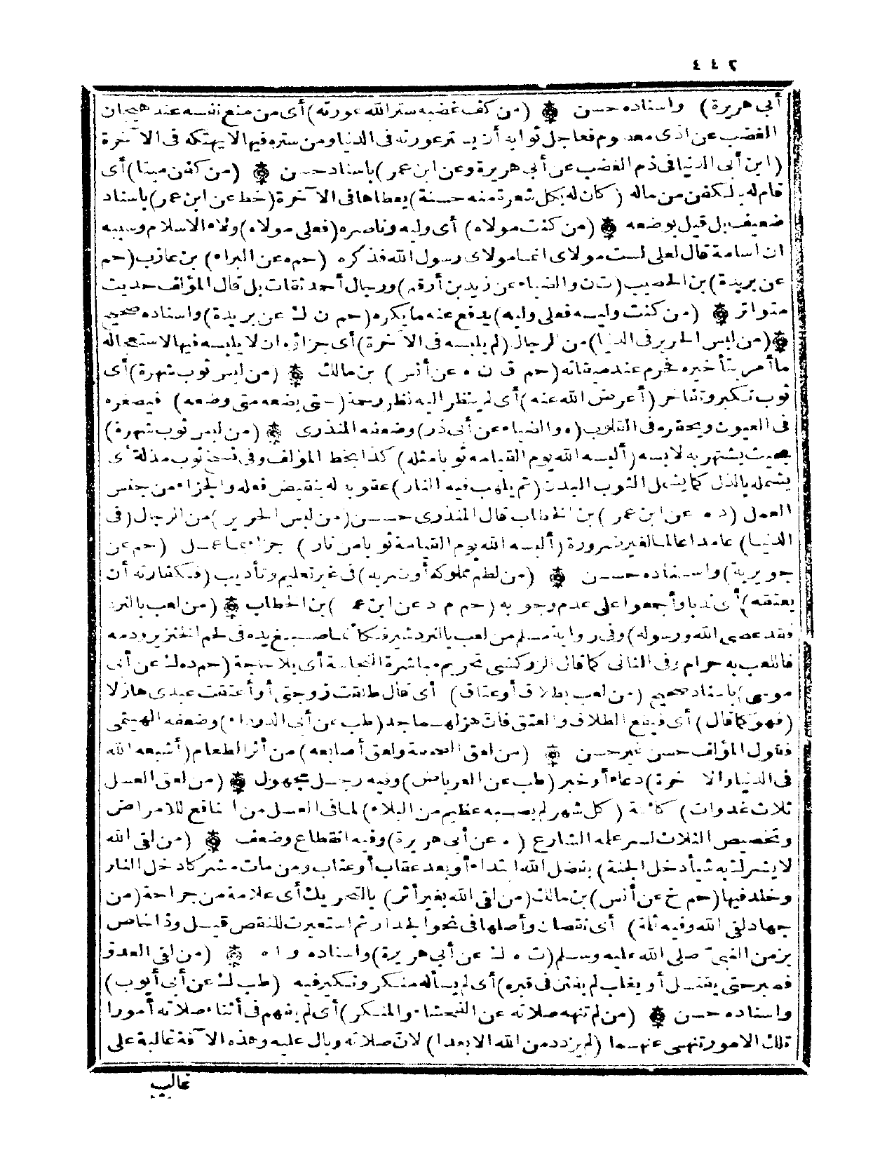 (من لبس ثوب شهرة) بِحَيْثُ يشْتَهر بِهِ لابسه (البسه الله يَوْم الْقِيَامَة ثوبا بامثله) كَذَا بِخَط الْمُؤلف وَفِي نسخ ثوب مذلة أَي يَشْمَلهُ بالذل كَمَا يَشْمَل الثَّوْب الْبدن (ثمَّ يلهب فِيهِ النَّار) عُقُوبَة لَهُ بنقيض فعله وَالْجَزَاء من جنس الْعَمَل (ده عَن ابْن عمر) بن الْخطاب قَالَ الْمُنْذِرِيّ حسن (من لبس الْحَرِير) من الرِّجَال (فِي الدُّنْيَا) عَامِدًا عَالما لغير ضَرُورَة (ألبسهُ الله يَوْم الْقِيَامَة ثوبا من نَار) جَزَاء بِمَا عمل (حم عَن جوَيْرِية) واسناده حسن