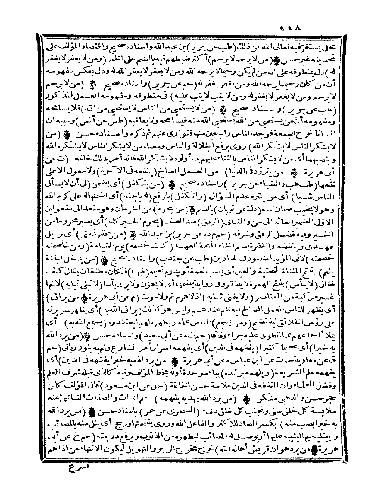 (من لَا يرحم لَا يرحم وَمن لَا يغْفر لَا يغْفر لَهُ وَمن لَا يتب لَا يتب عَلَيْهِ) فِي منطوقه وَمَفْهُومه الْعَمَل الْمَذْكُور (طب عَن جرير) واسناده صَحِيح