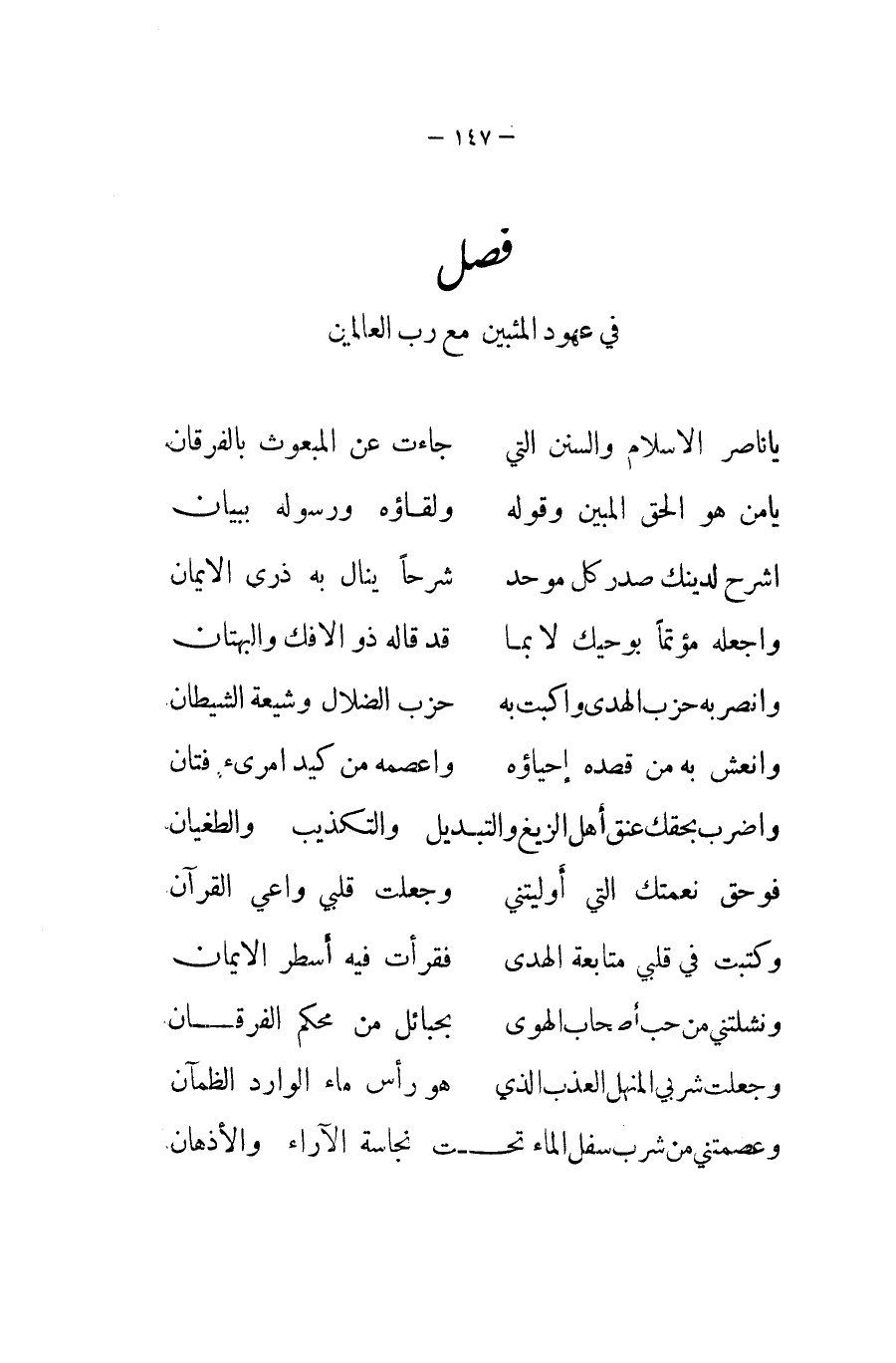 ... يَا نَاصِر الاسلام وَالسّنَن الَّتِي ... جَاءَت عَن الْمَبْعُوث بالفرقان ... يَا من هُوَ الْحق الْمُبين وَقَوله ... ولقاؤه وَرَسُوله بِبَيَان