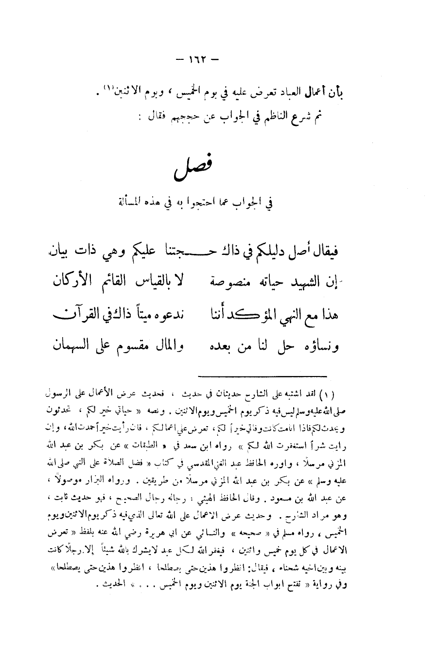 ثمَّ شرع النَّاظِم فِي الْجَواب عَن حججهم فَقَالَ