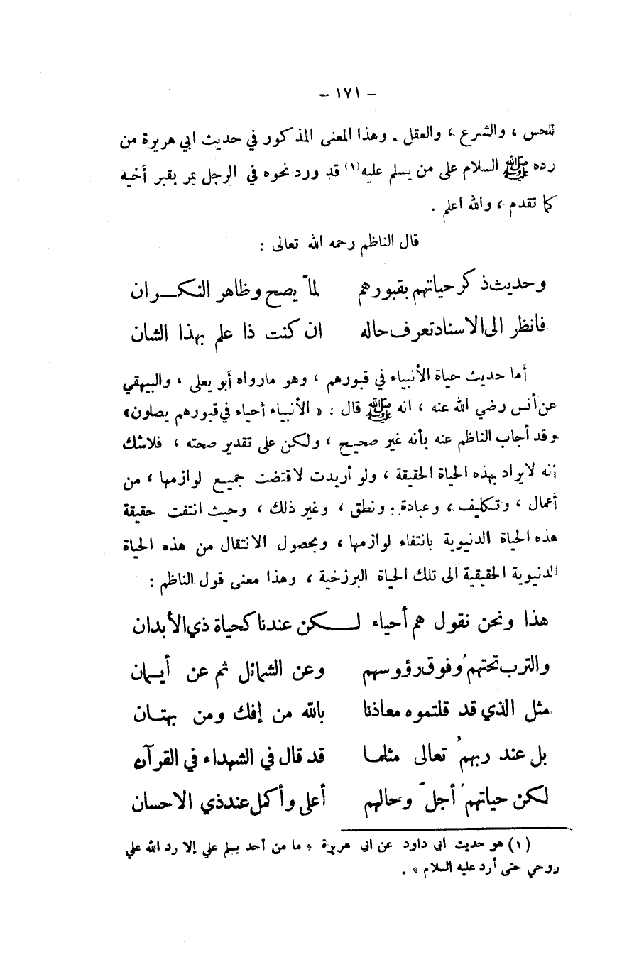 ... وَحَدِيث ذكر حياتهم بقبورهم ... لما يَصح وَظَاهر النكران ... فَانْظُر الى الاسناد تعرف حَاله ... ان كنت اذا علم بِهَذَا الشان ...