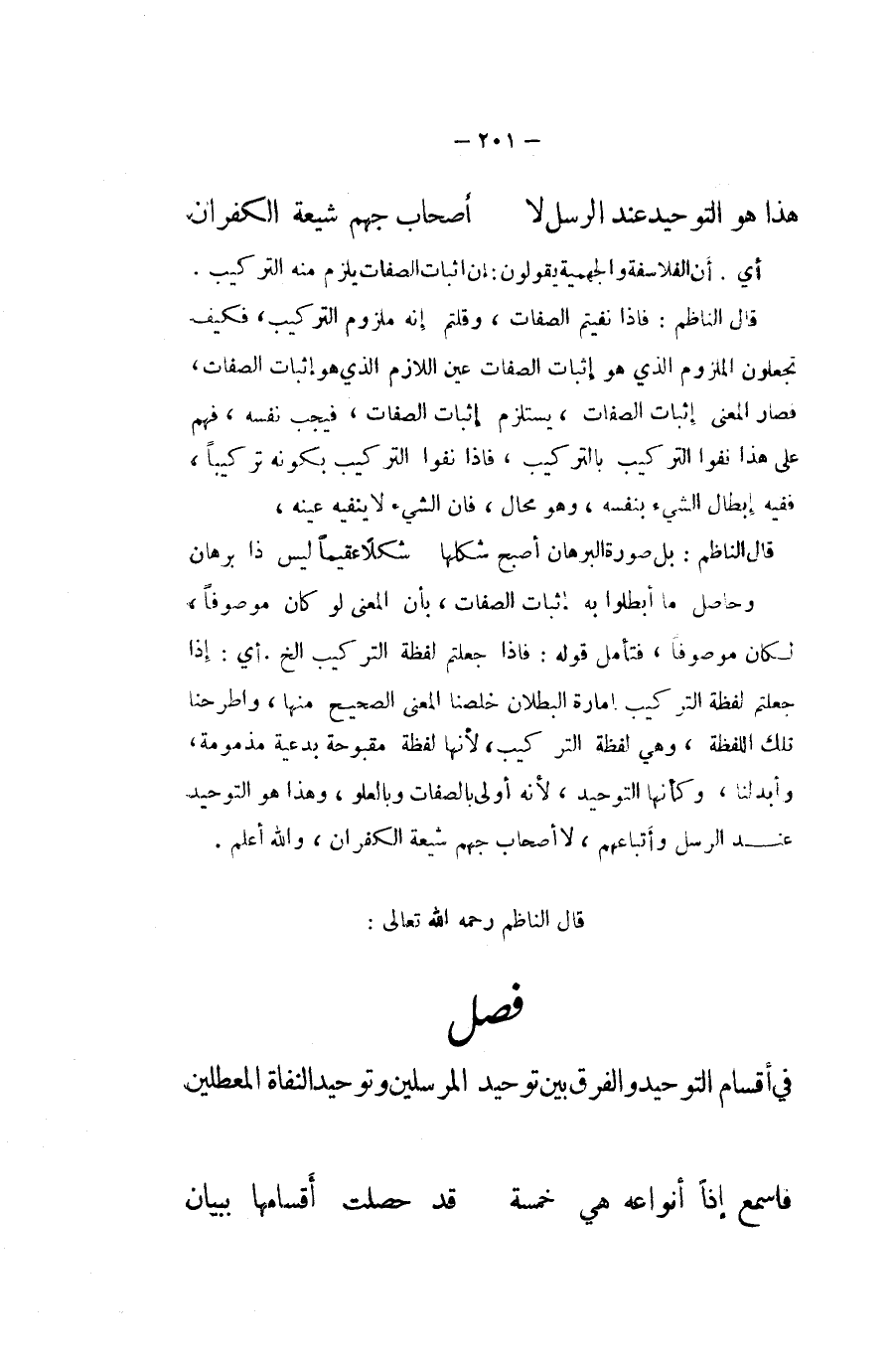 .. هَذَا هُوَ التَّوْحِيد عِنْد الرُّسُل لَا ... أَصْحَاب جهم شيعَة الكفران ...