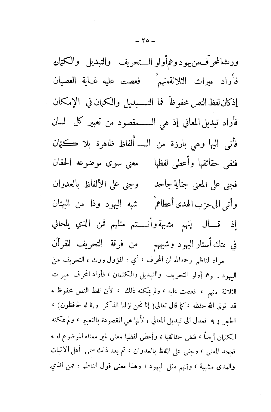 إِذْ قَالَ إِنَّهُم مشبهة وَأَنْتُم مثلهم فَمن الَّذِي يلحاني ... فِي هتك أَسْتَار الْيَهُود وشبههم من فرقة التحريف لِلْقُرْآنِ ...