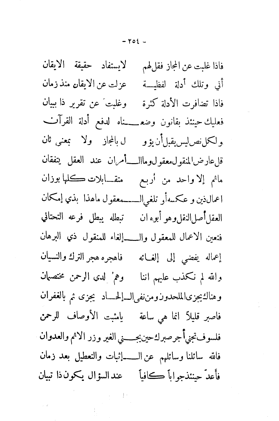 اني وَتلك أَدِلَّة لفظية ... عزلت عَن الايقان مُنْذُ زمَان ... فاذا تضافرت الْأَدِلَّة كَثْرَة ... وغلبت عَن تَقْرِير ذَا بِبَيَان