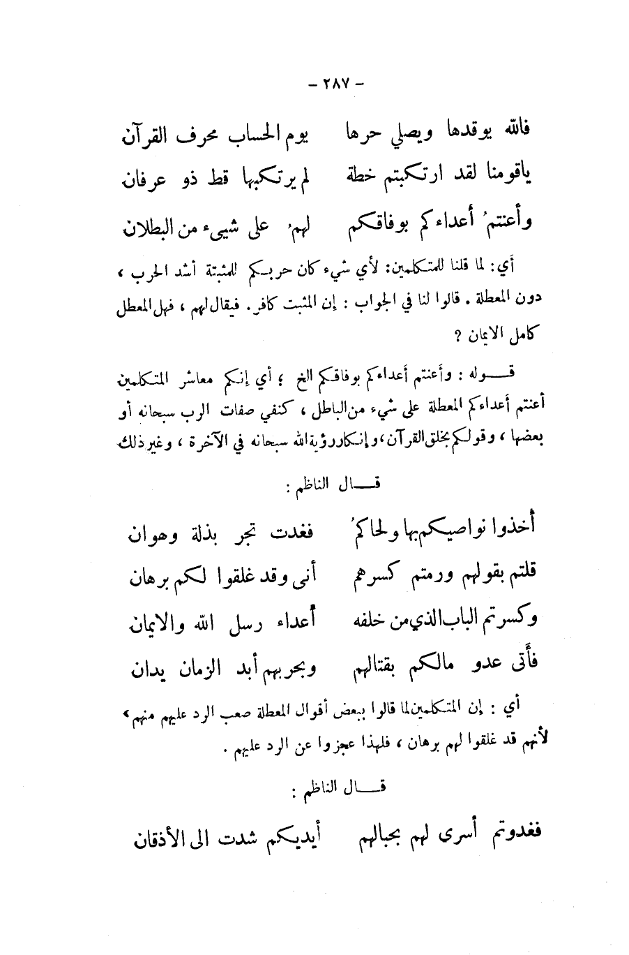 قَالَ النَّاظِم ... أخذُوا نواصيكم بهَا ولحاكم ... فغدت تجر بذلة وهوان ... قُلْتُمْ بقَوْلهمْ ورمتم كسرهم ... أَنى وَقد غلقوا لكم برهَان