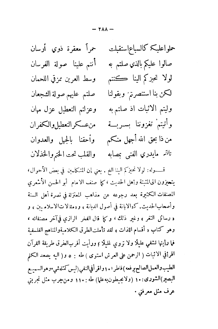 وليتم الاثبات اذ صلتم بِهِ ... وعزلتم التعطيل عزل مهان