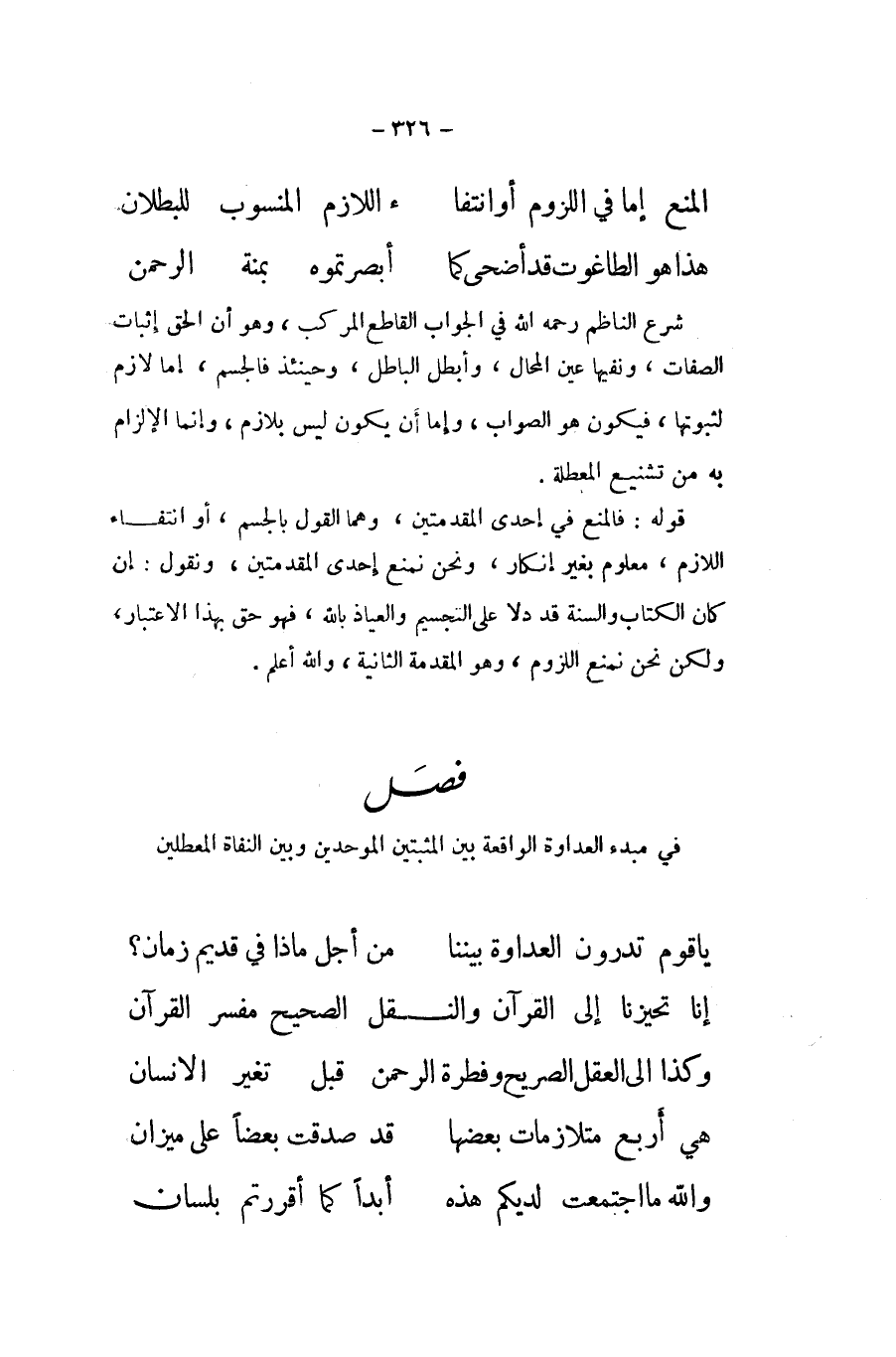 .. الْمَنْع إِمَّا فِي اللُّزُوم أَو انْتِفَاء ... اللَّازِم الْمَنْسُوب للبطلان ... هَذَا هُوَ الطاغوت قد أضحى كَمَا ... أبصرتموه بمنة الرَّحْمَن ...