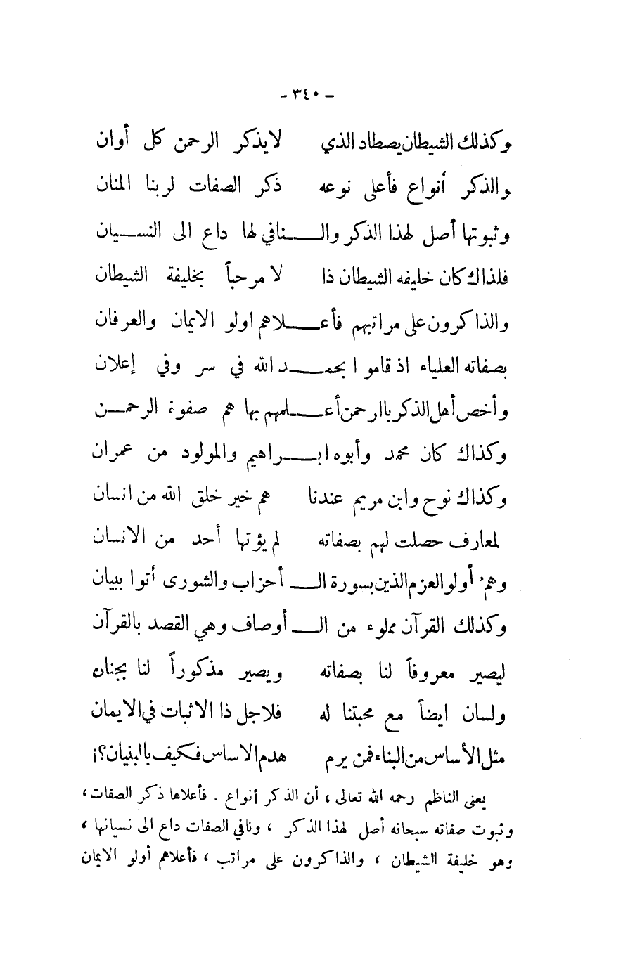وثبوتها أصل لهَذَا الذّكر والنافي لَهَا دَاع الى النسْيَان ... فلذاك كَانَ خَليفَة الشَّيْطَان ذَا ... لَا مرْحَبًا بخليفة الشَّيْطَان