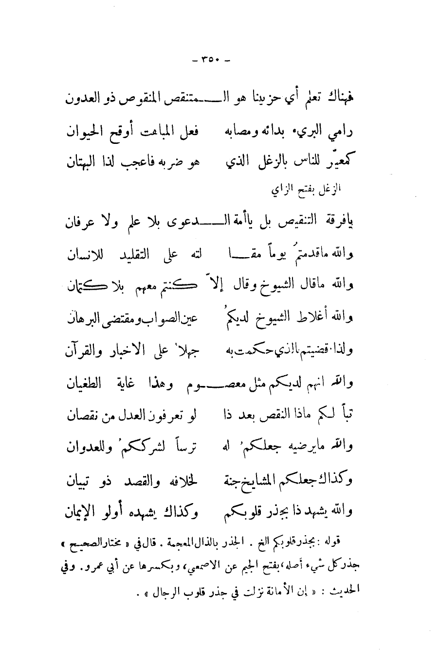 الزغل بِفَتْح الزَّاي ... يَا فرقة التنقيص بل يَا أمة الدَّعْوَى بِلَا علم وَلَا عرفان
