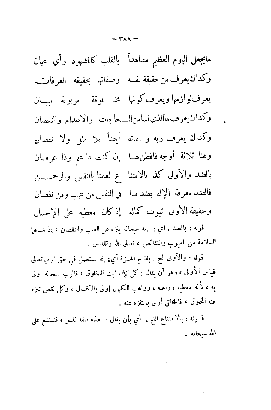 وَحَقِيقَة الأولى ثُبُوت كَمَاله إِذْ كَانَ معطيه على الْإِحْسَان ...