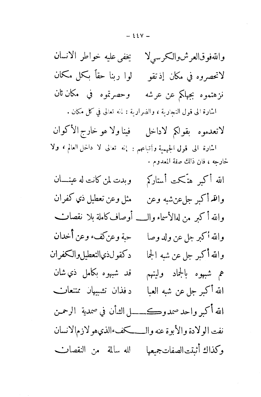وَالله أكبر جلّ عَن شبه الجما ... د كَقَوْل ذِي التعطيل والكفران ... هم شبهوه بالجماد وليتهم ... قد شبهوه بكامل ذِي شان ... الله اكبر جلّ عَن شبه العبا ... د فذان تشبيهان ممتنعان