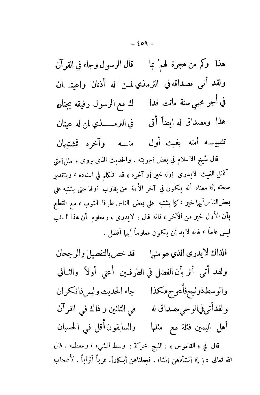 .. هَذَا وَكم من هِجْرَة لَهُم بِمَا ... قَالَ الرَّسُول وَجَاء فِي الْقُرْآن ... وَلَقَد أَتَى مصداقه فِي التِّرْمِذِيّ لمن لَهُ أذنان واعيتان