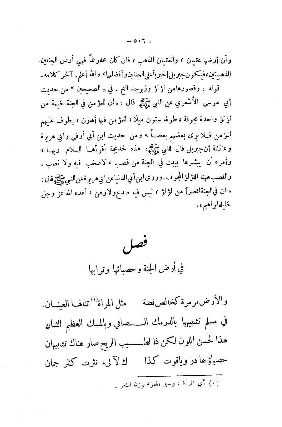 فِي أَرض الْجنَّة وحصبائها وترابها ... وَالْأَرْض مرمرة كخالص فضَّة ... مثل الْمَرْأَة تنالها العينان