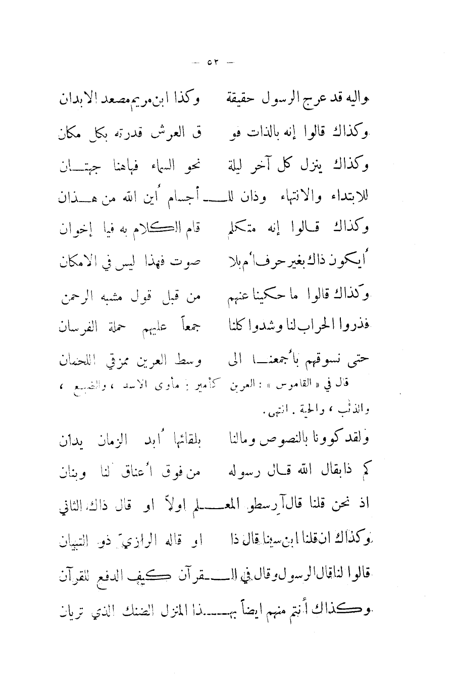 اذ نَحن قُلْنَا قَالَ آرسطو الْمعلم اولا اَوْ قَالَ ذَاك الثَّانِي ... وكذاك ان قُلْنَا ابْن سينا قَالَ ذَا ... اَوْ قَالَه الرَّازِيّ ذُو التِّبْيَان