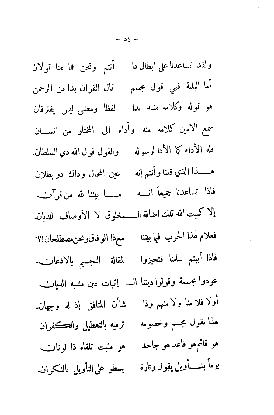 فاذا أَبَيْتُم سلمنَا فتحيزوا لمقالة التجسيم بالاذعان ... عودوا مجسمة وَقُولُوا ... ديننَا ال إِثْبَات دين مشبه الديَّان
