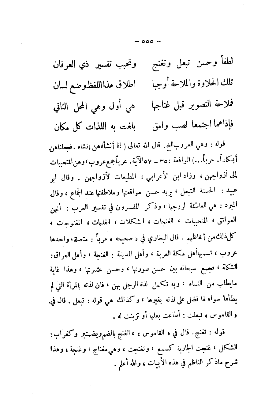 .. لطفا وَحسن تبعل وتغنج ... وتحبب تَفْسِير ذِي الْعرْفَان