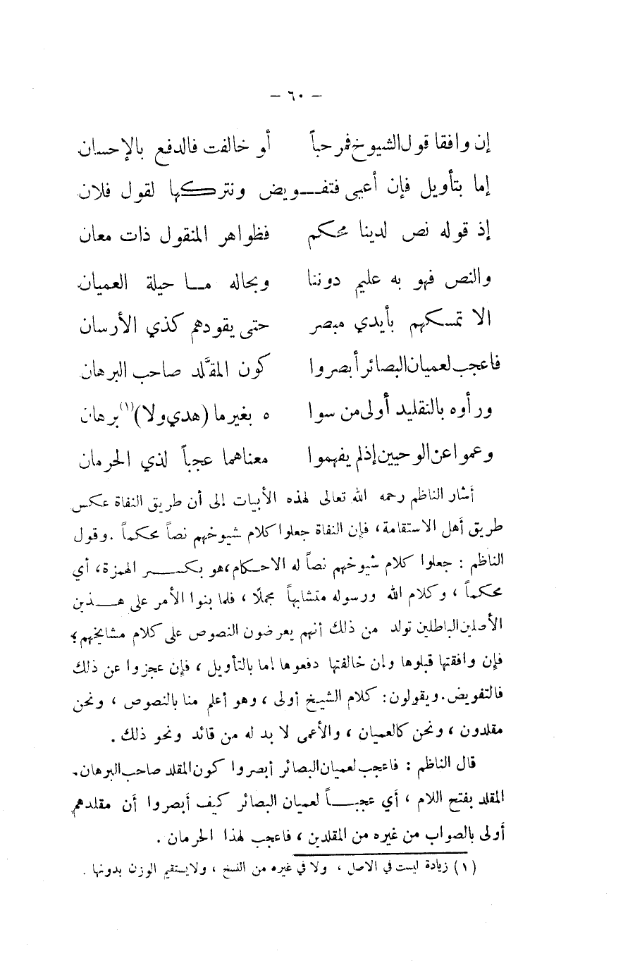 فاعجب لعميان البصائر أبصروا كَون الْمُقَلّد صَاحب الْبُرْهَان ... ورأوه بالتقليد أولى من سوا ... هـ بغَيْرهَا هدي وَلَا برهَان ... وعموا عَن الوحيين إِذْ لم يفهموا ... مَعْنَاهُمَا عجبا لذِي الحرمان ...
