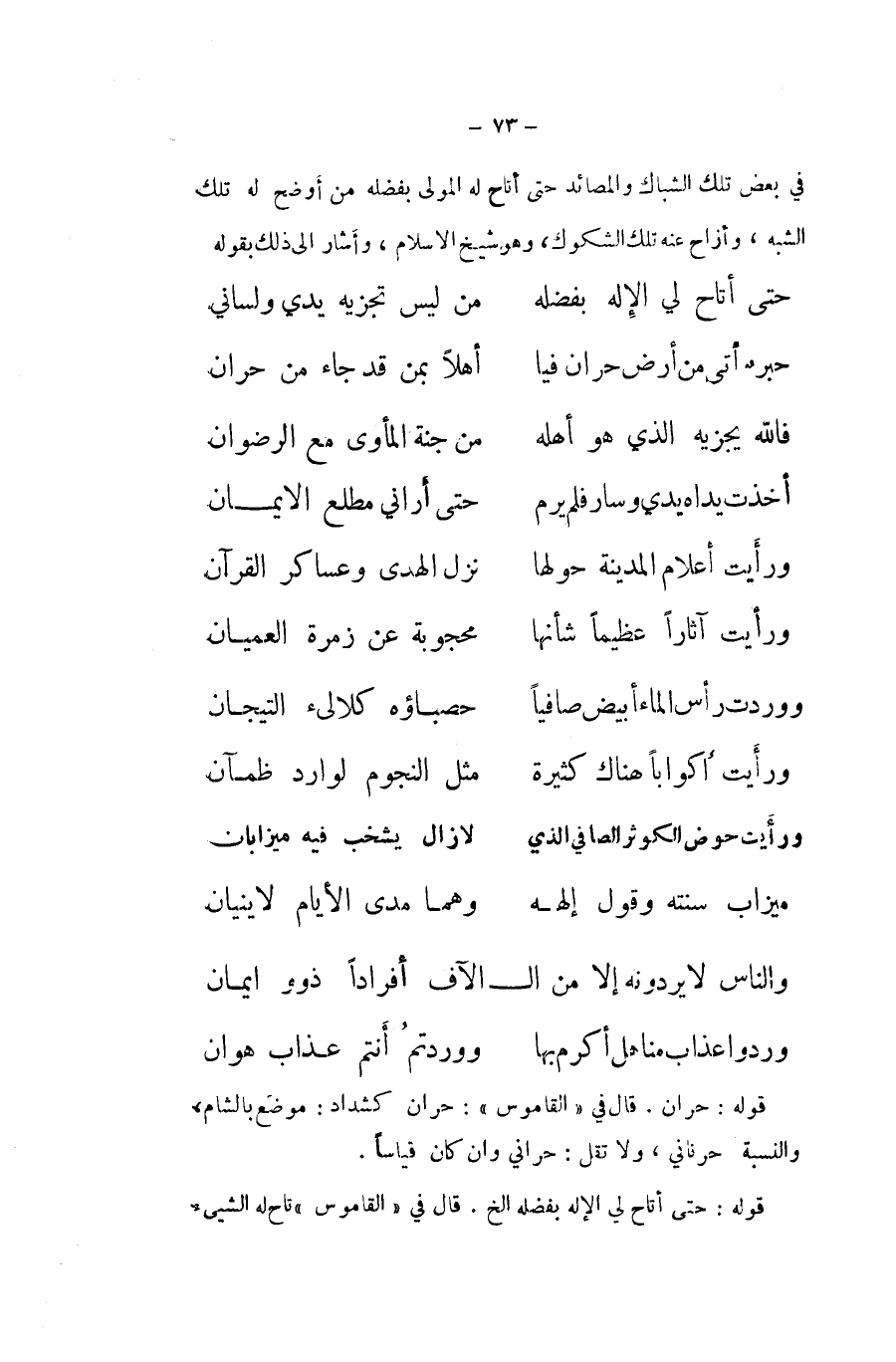 حبره أَتَى من أَرض حران فيا أَهلا بِمن قد جَاءَ من حران ... فَالله يجْزِيه الَّذِي هُوَ أَهله من جنَّة المأوى مَعَ الرضْوَان