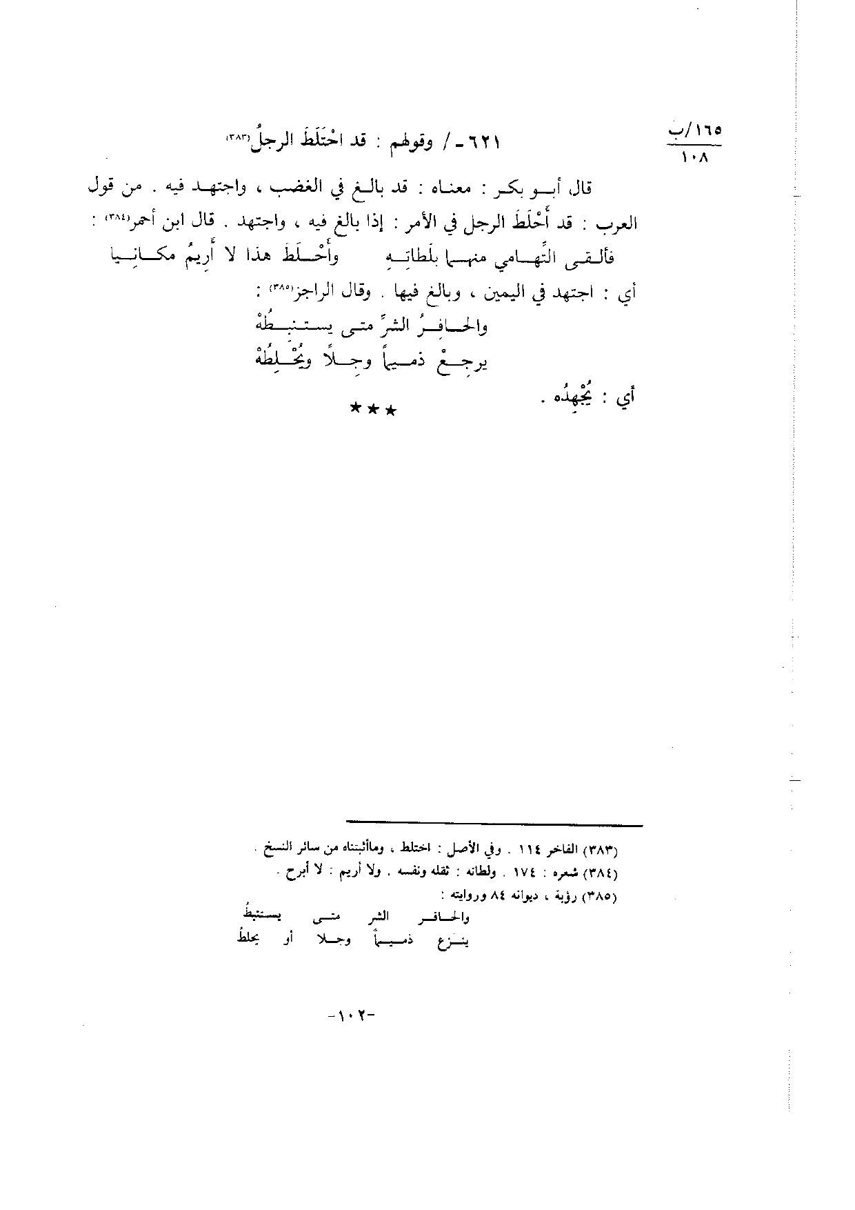 621 - / وقولهم: قد احْتَلَطَ الرجلُ