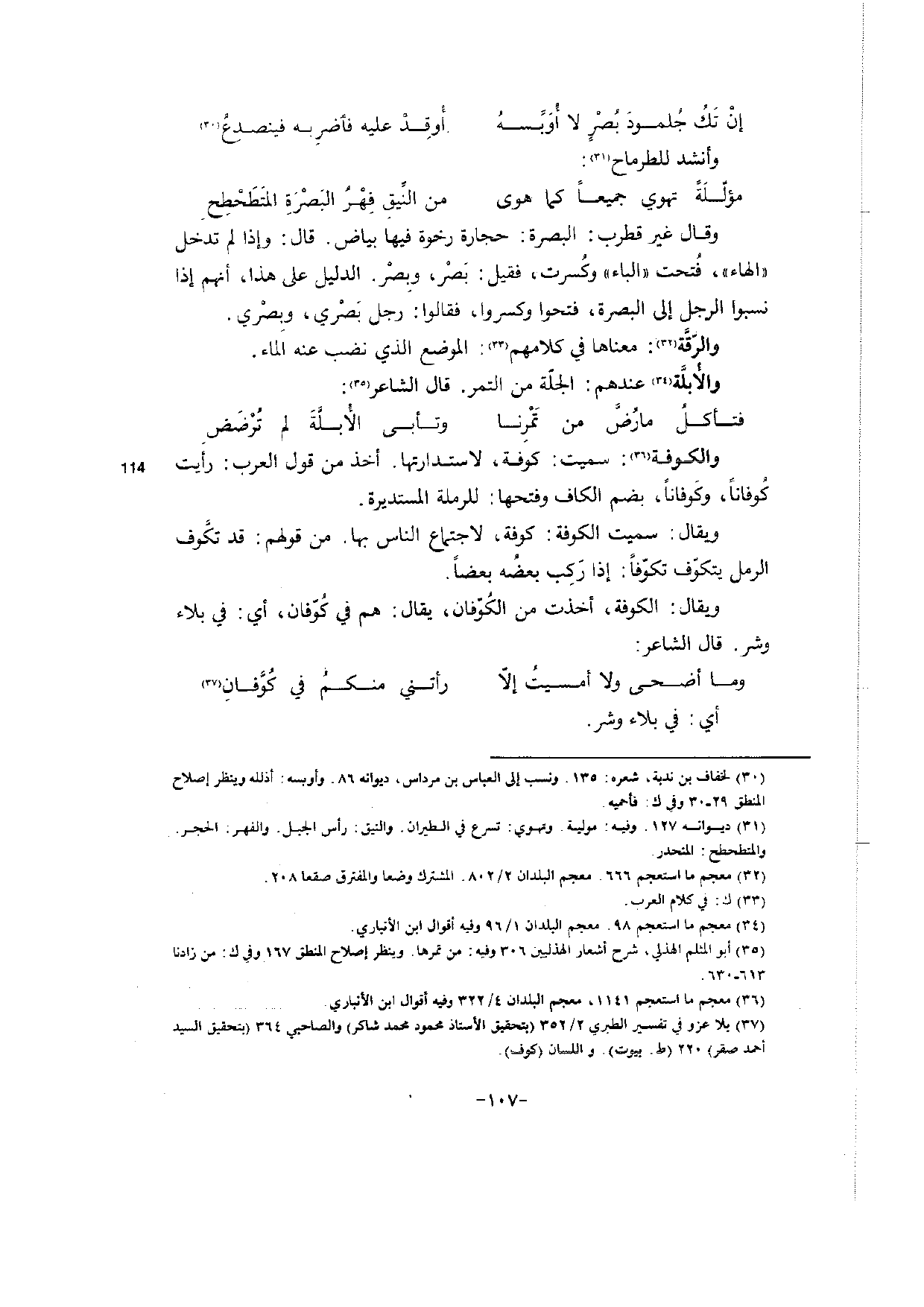 (37) بلا عزو في تفسير الطبري 2 / 35 (بتحقيق الأستاذ محمود محمد شاكر) والصاحبي 364 (بتحقيق السيد أحمد صقر) 220 (ط. بيوت) . واللسان (كوف) .