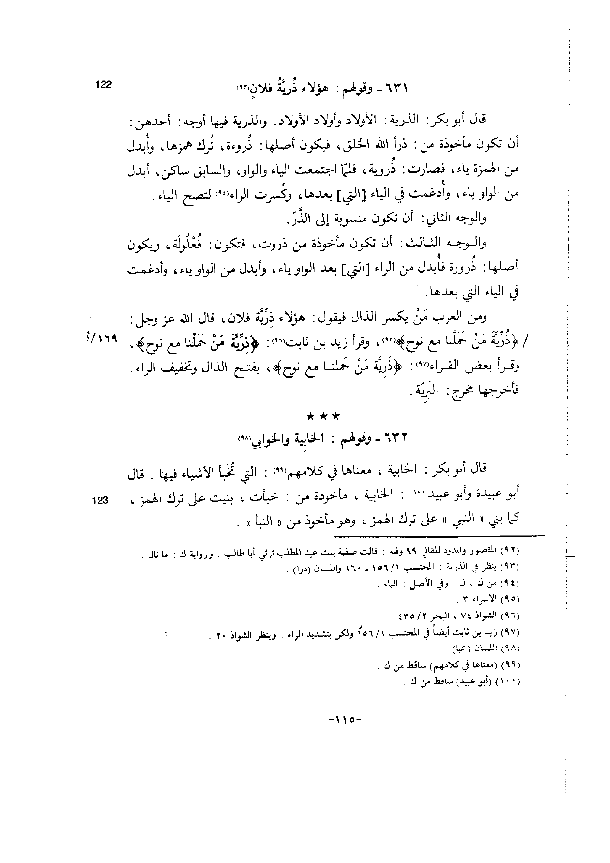 631 - وقولهم: هؤلاء ذُريَّةُ فلانٍ