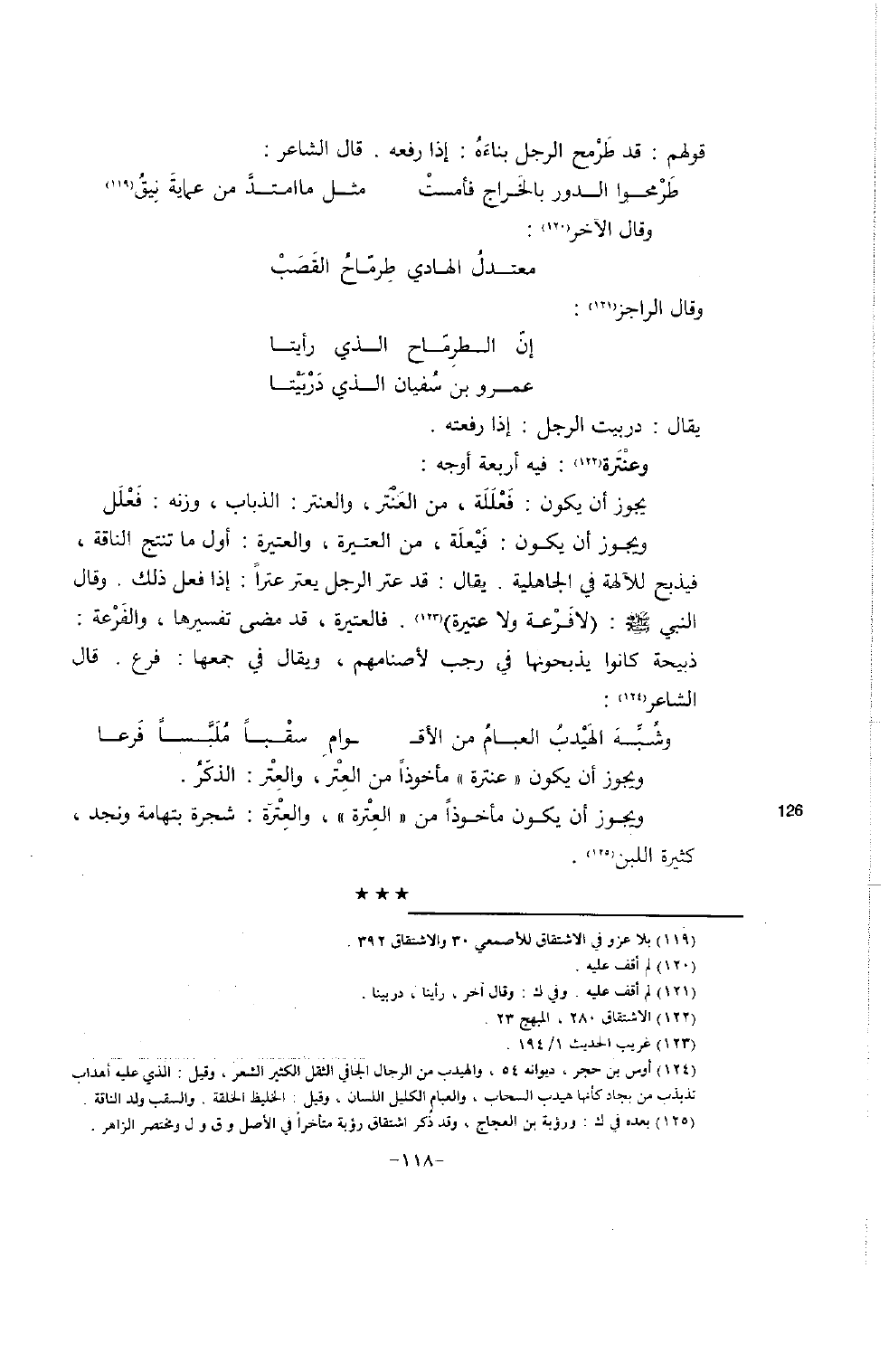 (125) بعده في ك: ورؤبة بن العجاج، وقد ذُكر اشتقاق رؤبة متاخراً في الأصل وق ول ومختصر الزاهر.