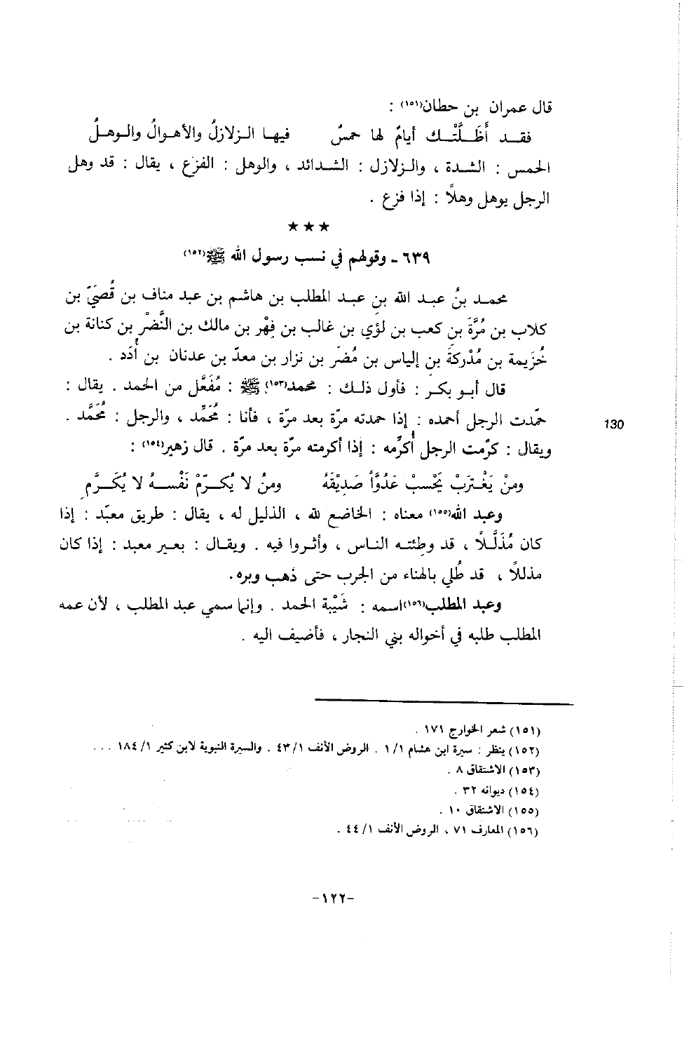 وعبد المطلب (156) اسمه: شَيْبة الحمد. وإنما سمي عبد المطلب، لأنه عمه المطلب طلبه في أخواله بني النجار، فأضيف إليه.