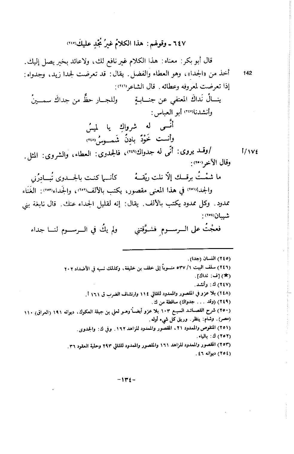 (251) المنقوص والممدود 21، المقصور والممدود للزاهد 162. وفي ك: والجدوى.