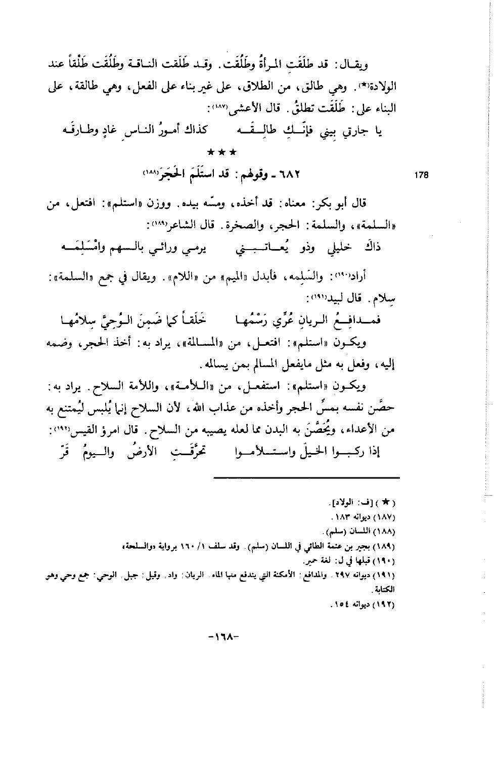 أراد (190) : والسَلِمه، فأبدل " الميم " من اللام ". ويقال في جمع " السلمة ": سِلام. قال لبيد (191) :