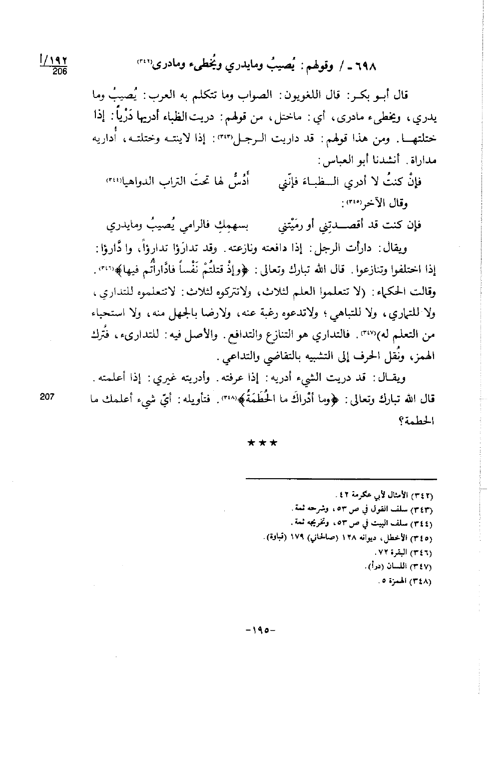 698 - / وقولهم: يُصيبُ وما يدري ويُخطىء وما درى