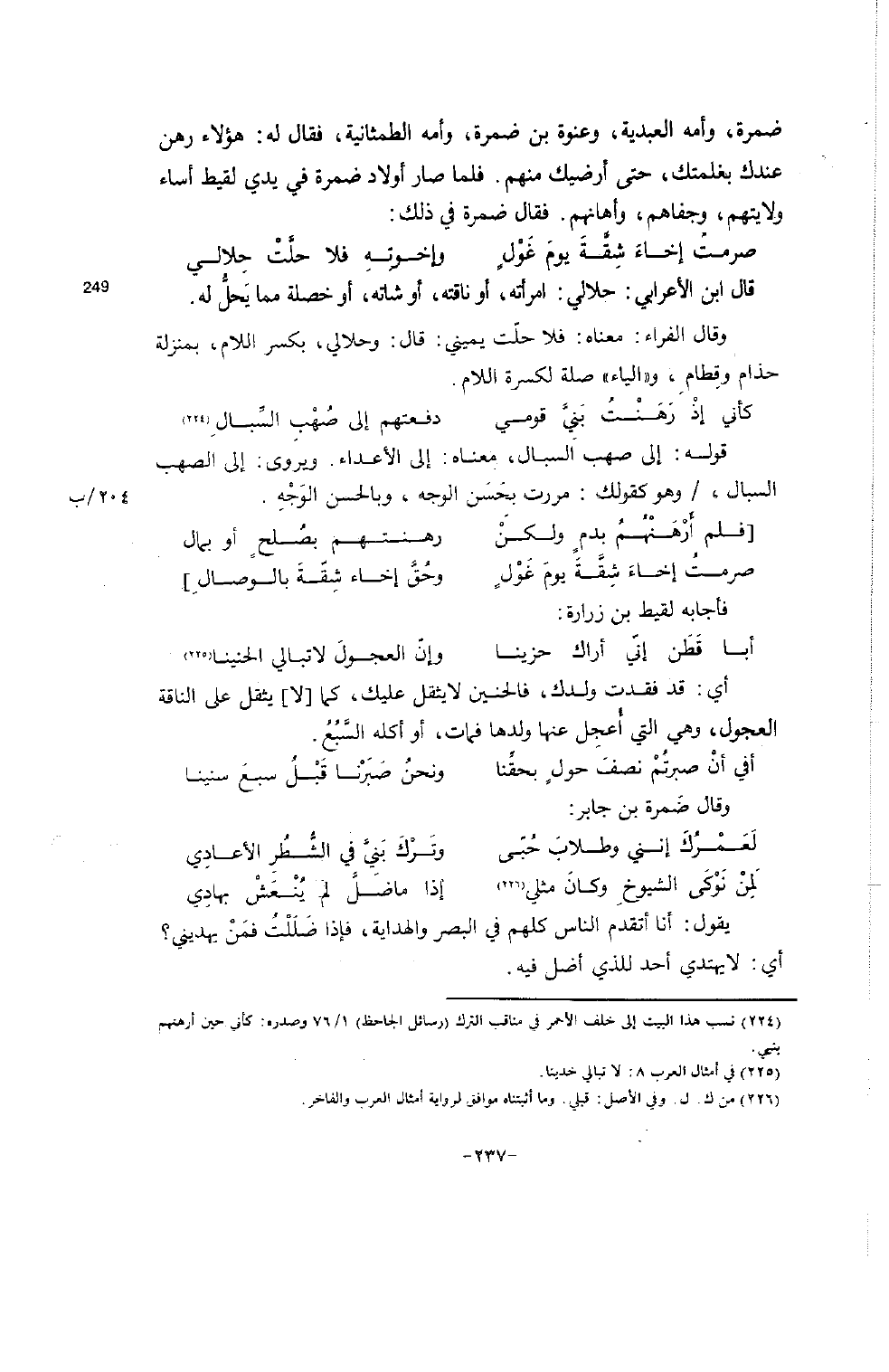 (أبا قَطَن إنّي أراك حزينا ... وإنّ العجولَ لا تبالي الحنينا) (225)
