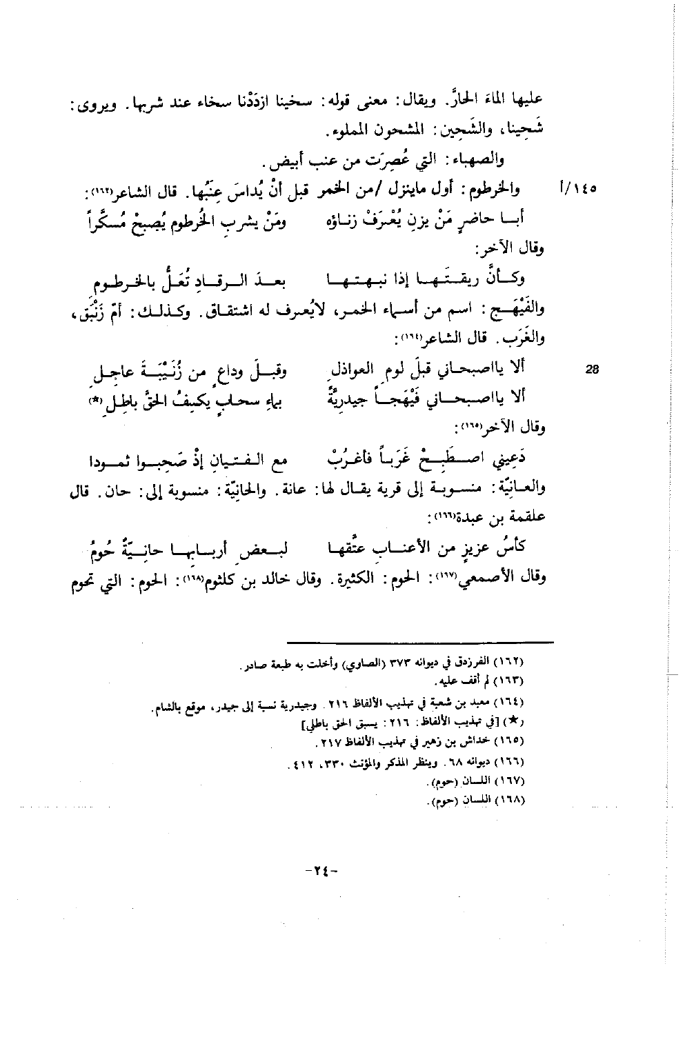 وقال الأصمعي (167) : الحوم: الكثيرة: وقال خالد بن كلثوم (168) : الحوم: التي تحوم