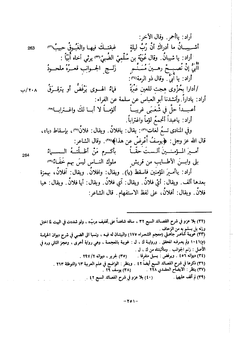 (/ أَدارا بحُزْوى هِجتِ للعينِ عَبْرَةً ... فماءُ الهوى يَرْفَضُّ أو يترقرَقُ) 208 / ب