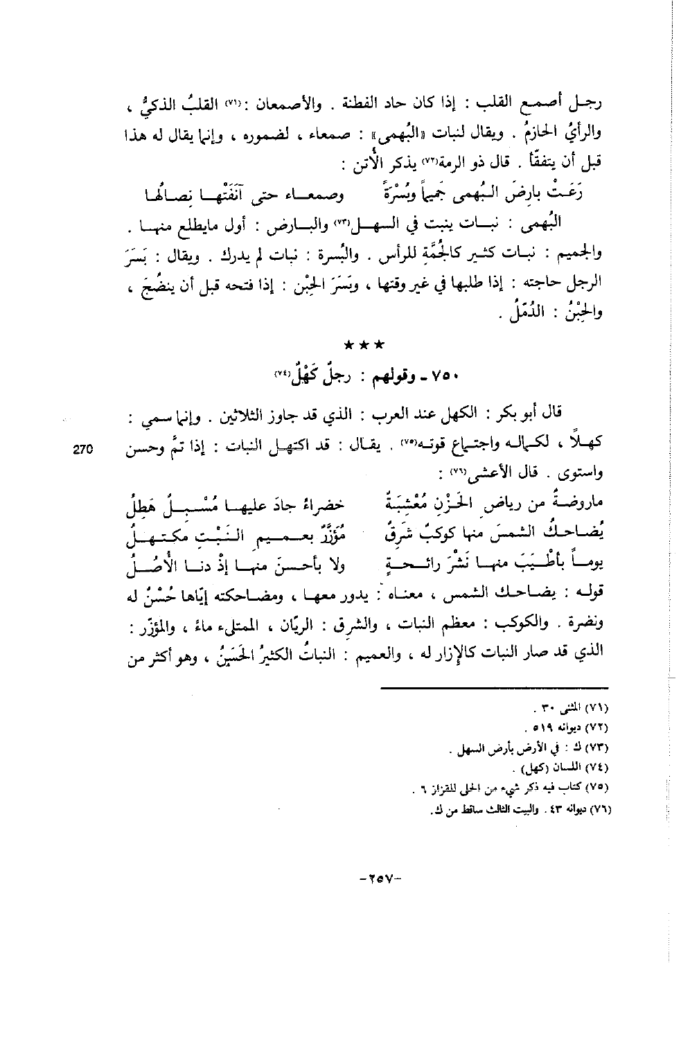 قال أبو بكر: الكهل عند العرب: الذي قد جاوز الثلاثين. وإنما سمي: كهلاً، لكماله واجتماع قوته (75) . يقال: قد اكتهل النبات: إذا تمَّ وحسن (270) واستوى. قال الأعشى (76) :