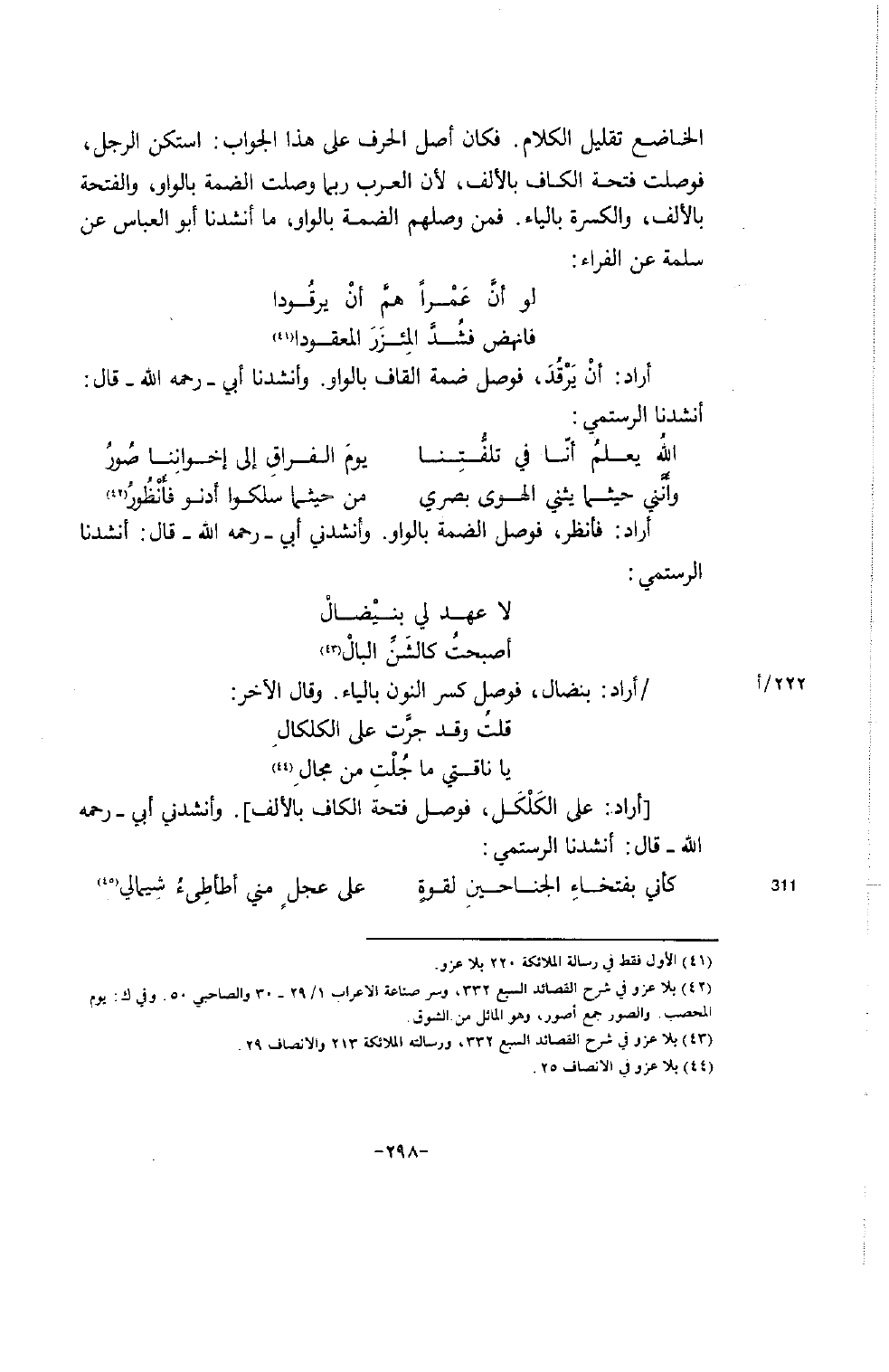 (43) بلا عزو في شرح القصائد السبع 332، ورسالته الملائكة 213 والانصاف 29.