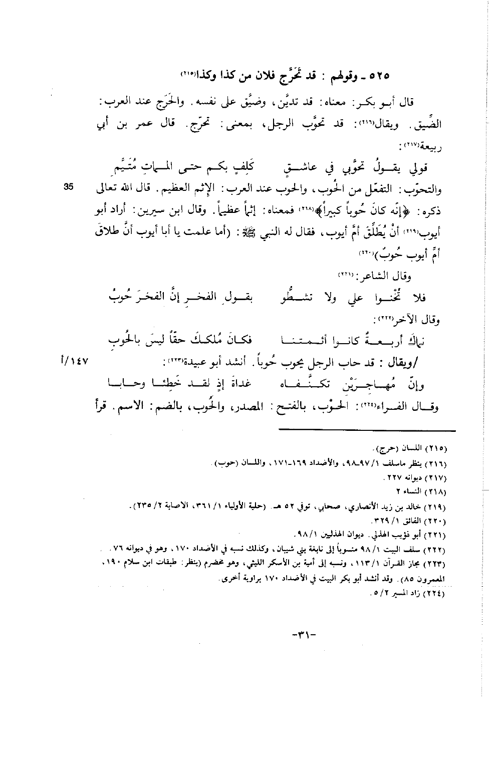 (216) ينظر ما سلف 97 / 1 - 98، والأضداد 169 - 171، واللسان (حوب) .