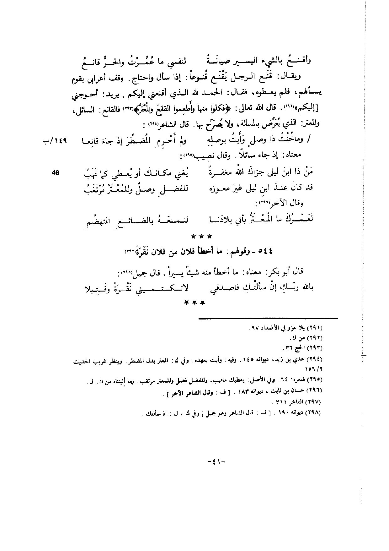 (وما خُنْتُ ذا وصلٍ وَأَيتُ بوصلِهِ ... ولم أَحْرِمِ المُضطَّرَ إذ جاءَ قانِعا) 149 / ب