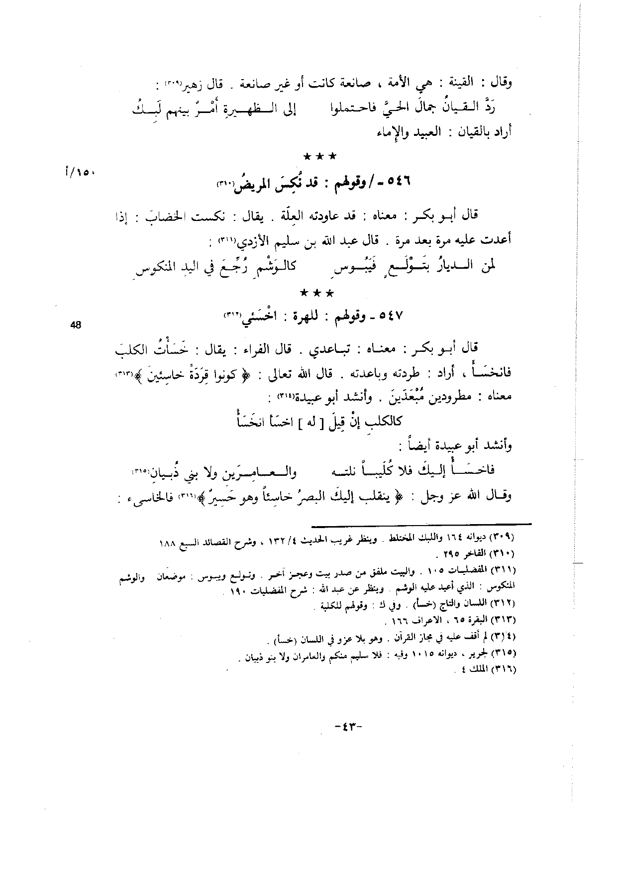 (فاخسَأْ إليكَ فلا كُلَيباً نلته ... والعامِرَينِ ولا بني ذُبيانِ) (315)